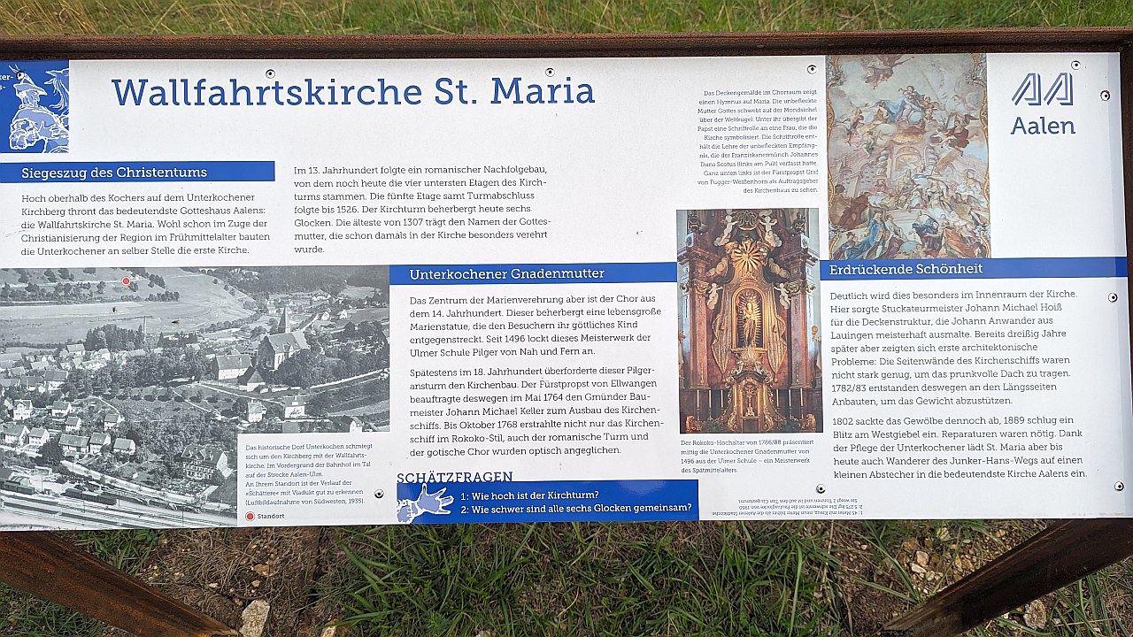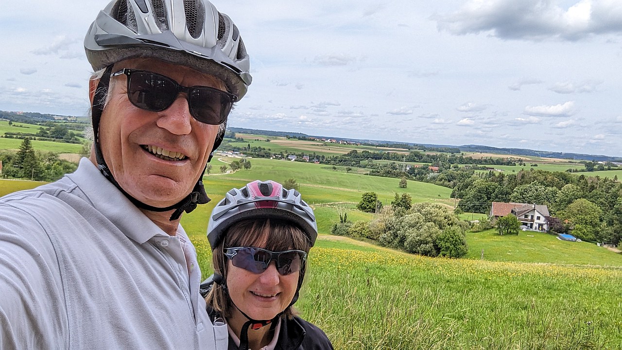 Nach dem Frühstück beschlossen wir, den trocken angesagten Tag für eine Radtour zu nutzen. Zuerst ging es durch Aalen und Wasseralfingen an den Kocher, dann den Kocherradweg entlang bis kurz vor Untergröningen. Dort verließen wir das Kochertal und fuhren steil den Berg hinauf nach Obergröningen und von dort aus quer übers Land zurück nach Aalen. Im Kochertal gab es vor Wölfstein eine Rast an einer Bikerstation, von der wir aber nur die Sitzgelegenheit nutzen und die Sonne und etwas Gebäck genossen. Eine zweite kleine Trinkpause legten wir auf dem Rückweg auf der Hochfläche ein, ansonsten sind wir immer geradelt und haben die Tour sehr genossen. Xenia ging es erstaunlich gut und die Erkältung wurde sogar besser.