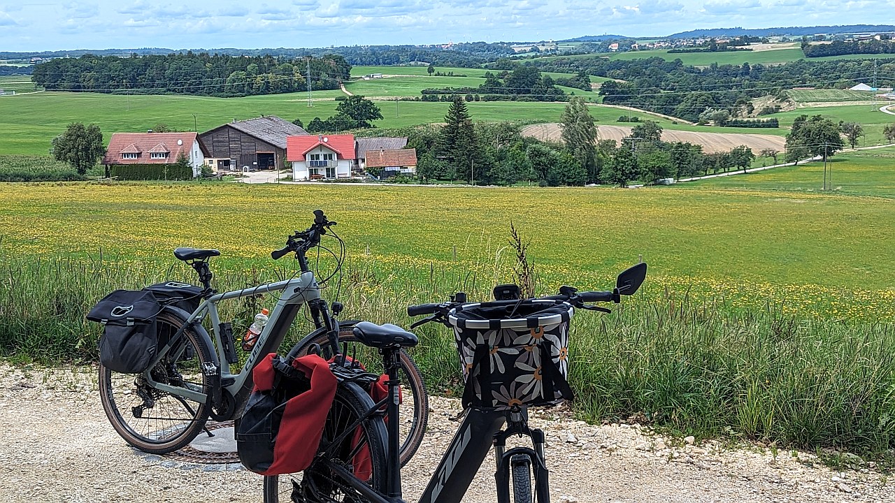 Da es keine Fahrradladestation beim Museum gibt, fuhren wir noch an eine Ladestation bei BayWa, die die App uns nannte. Auf dem Weg dorthin kamen wir an einem guten Bäcker vorbei und deckten uns mit Brezeln, Wecken und einem Nusseckle ein. Die BayWa-Station erwies sich dann leider auch nicht als geeignet, da sie nicht mehr als eine Steckdose war und man sein eigenes Ladegerät dann dort liegenlassen muss, bis das Rad geladen ist. Das war uns dann doch zu unsicher und im Falle von Regen auch nicht empfehlenswert.