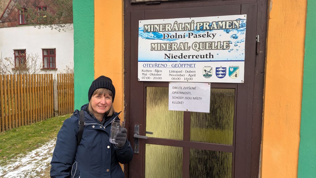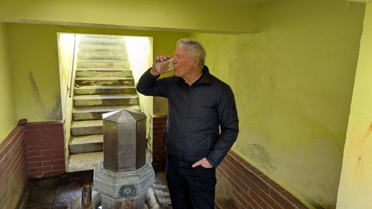 Weiter ging es nach Niederreuth, wo Mutti gelebt hatte. Ihr Elternhaus steht nicht mehr, aber vor dem Platz, wo es gestanden hatte, parkten wir die Berta und besuchten das “Säuerlingshäusel”, wo wir das Mineralwasser probierten – scheußlich aber wohl gesund, sehr eisenhaltig, leicht schweflig und leicht prickelnd. Udo hinterließ einen Zettel, dass er da war. Vielleicht findet ihn ja Hermann Heinrich, der Bruder von Erhard, der das Häuschen pflegt und instand hält.