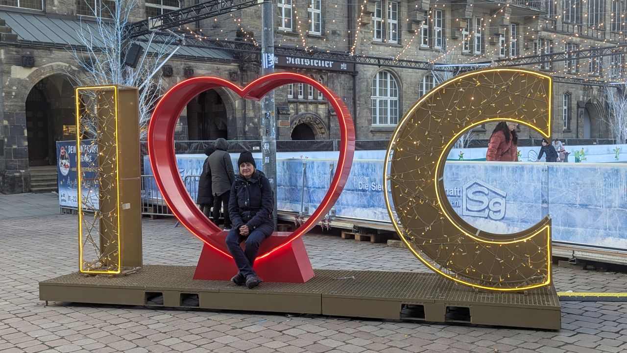 Nach einem Kaffee kamen wir um 15 Uhr los und marschierten im Sonnenschein 1,5 km in die andere Richtung zum Marktplatz und der sich dort befindenden Touristen-Info. Wir ließen uns auf eine Liste für eine Stadtführung am Freitag setzen, früher gab es leider nichts. Ausgerüstet mit einem Plan, auf dem eine Runde mit den wichtigsten Sehenswürdigkeiten der Stadt und Erklärungen dazu standen, machten wir eine Erkundungsrunde durch die Altstadt: Marktplatz mit Doppelrathaus (Altes und Neues Rathaus zusammengebaut), vorbei an dem roten Turm und der Stadthalle, zum Karl-Marx-Monument und weiter zum Theaterplatz mit der Oper und der St. Petrikirche. Leider ließ uns jetzt die Sonne im Stich, dafür frischte ein eisiger Wind auf. Auf dem Rückweg machten wir eine Aufwärmpause im großen Einkaufzentrum “Galerie Roter Turm”, schauten uns die Kinoschaufenster an und kauften bei einem Bäcker ein paar Wecken fürs Abendessen.