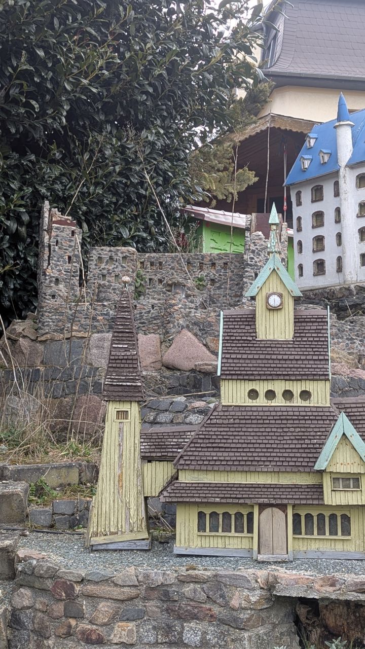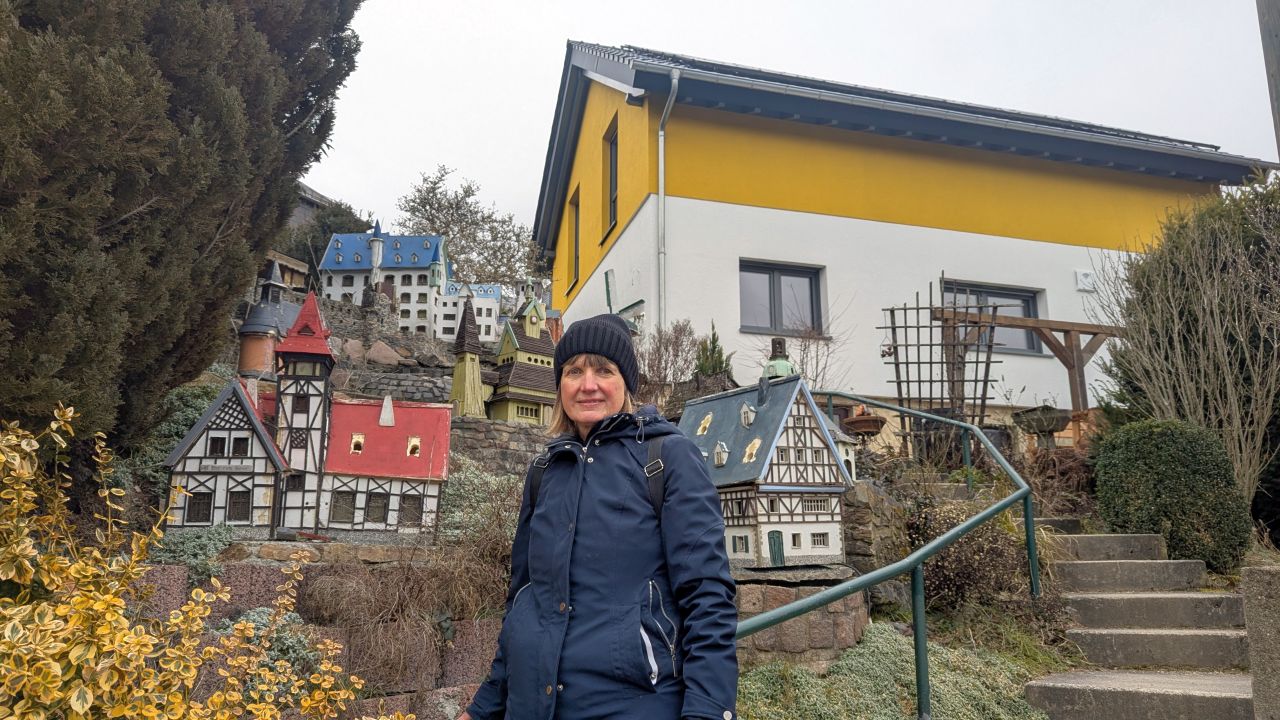 Frisch gestärkt ging es zum Wasserschloss, durch den Schlosshof und einmal rundum am Wassergraben entlang. Nun erkundeten wir noch die Úmgebung – zuerst den Park mit Golfanlage und den umliegenden Wald mit kleinem See und Trimmdichpfad, dann ging es auf die andere Seite der Bahn und ins Ort hinein. Auf dem Weg kamen wir an einem Garten mit Miniaturlandschaft vorbei, der uns gut gefallen hat. Die Enkelin des Erbauers kehrte gerade nach Hause zurück und wir hatten ein nettes Gespräch mit ihr. Leider kann der Opa die Anlage nicht mehr pflegen und die Nachkommen haben keine Zeit und keine Kapazität mehr dafür. Eigentlich sehr schade ...