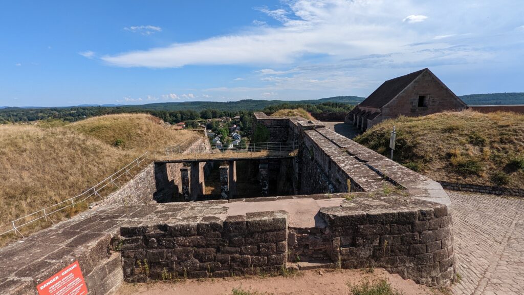Anschließend ging es zur Besichtigung der Zitadelle. Die Räder konnten wir am Eingang stehen lassen, bekamen Kopfhörer und wurden in die Burg geschickt. Dort war eine Audiotour durch die verschiedenen Gänge und Räume der Zitadelle vorbereitet, die wir zusammen mit einem holländischen Ehepaar unternahmen. Es wurden verschiedene Filmsequenzen in den Räumen gezeigt mit der Belagerungsgeschichte der Burg von 1870 und der Niederlage der Franzosen gegen die Bayern. Krieg war schon immer grausam … aber es war informativ und unterhaltsam aufgemacht.