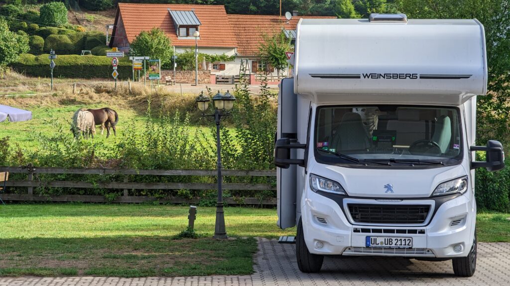Auf kleinen Sträßchen machten wir uns auf den Weg gen Süden. Wir wollten die Felsenwohnungen in Graufthal besuchen. Da sich das Wetter wunderschön herausputzte, entschlossen wir uns, zuerst einen Stellplatz von France Passion in Dossenheim-sur-Zinsel anzufahren und von dort aus mit den Rädern zu den Felsenwohnungen zu fahren.