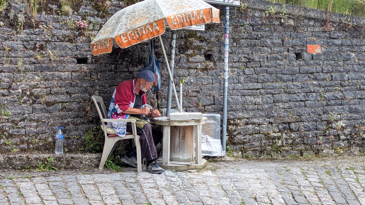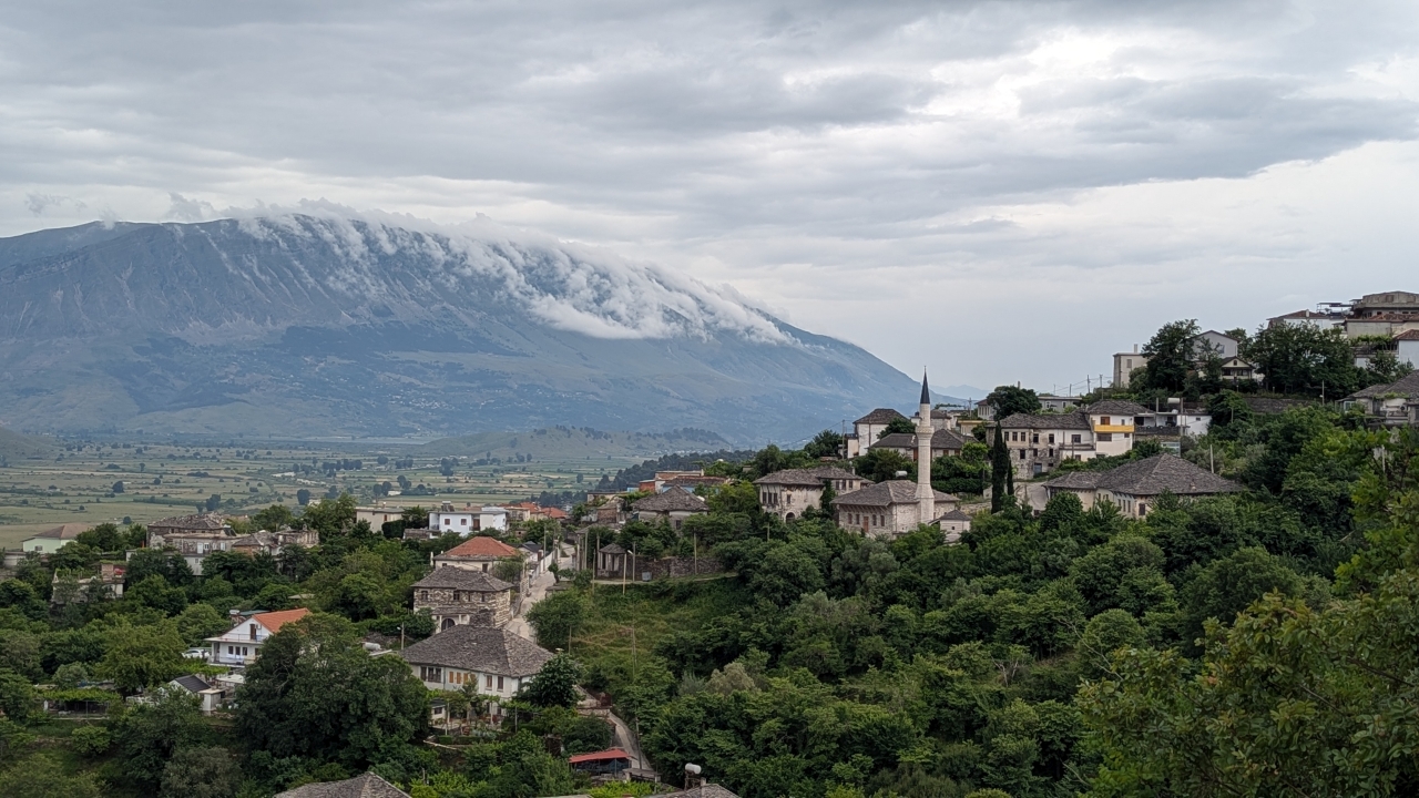 Am Morgen war der Himmel bewölkt. Während wir frühstückten hat es sogar geregnet. Es hörte aber bald wieder auf und wir starteten zur geplanten Wanderung durch Gjirokastër über die Festung zur Brücke von Ali Pasha und über die Altstadt wieder zurück. Was diese Tour wieder anstrengend machte waren die 260 hm, die wir auf sehr steilen Wegen überwinden mussten.