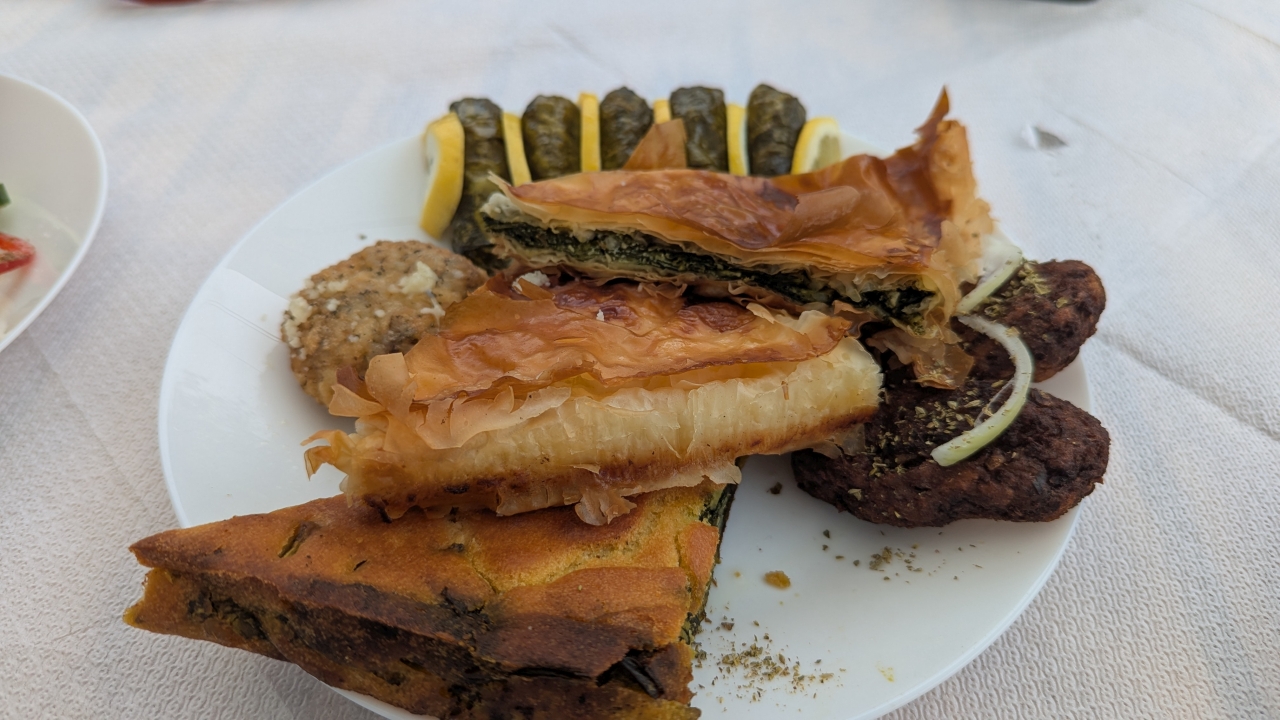 Bevor wir wieder zur Festung kamen, hielten wir an einem kleinen Straßenrestaurant mit Burgblick und aßen eine gemischte Platte und einen Salat. Hier wird man vor fast jedem Restaurant angesprochen und eingeladen, doch Platz zu nehmen oder zumindest die Menuekarte anzuschauen.
