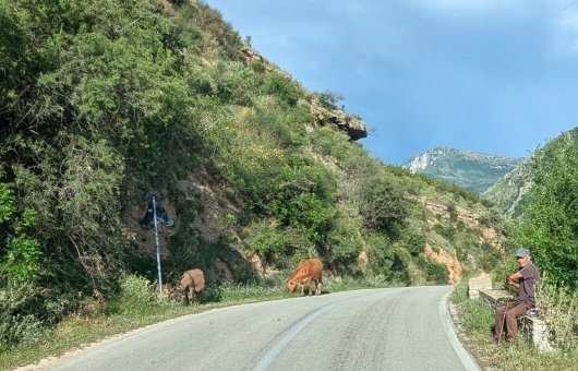 Wieder ging es etliche Höhenmeter steil den Berg hinauf und wir kamen ganz schön ins Schnaufen. Gut, dass wir diesmal Wasser dabei hatten! Unterwegs sahen wir noch die traditionelle und die moderne Art der Fortbewegung in Albanien.