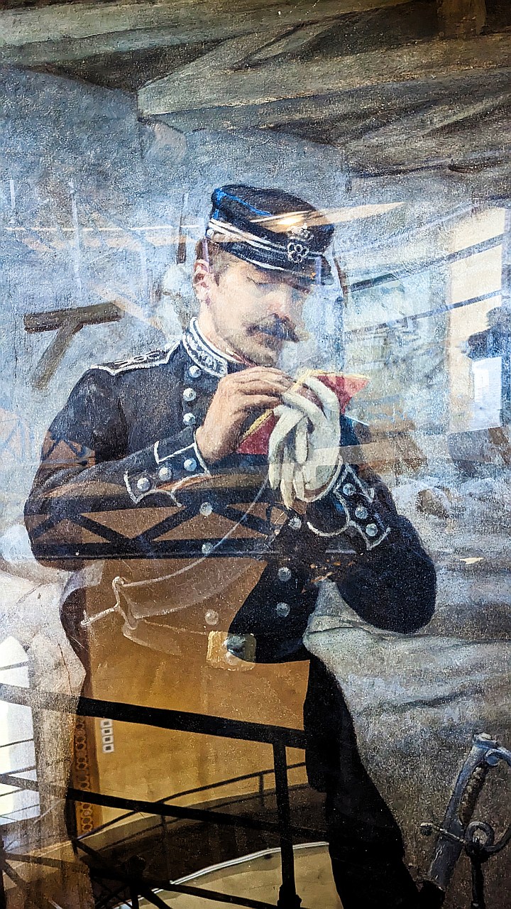 Das erste Highlight der Tour war der Torre di San Martino, bei dem wir um 11:40 Uhr ankamen. Wir konnten ihn besichtigen, mussten uns aber etwas beeilen, da das Gelände um 12:30 Uhr bis 13:30 Uhr für eine Mittagspause geschlossen wird und man in dieser Zeit nicht mehr rauskommt. Den Turm kann man besteigen, es geht im Innern über eine Vielzahl von Rampen kreisförmig nach oben. Die Wände sind mit Fresken und verschiedenen Bildern mit Kriegsszenen bemalt. Der Turm wurde zu Ehren König Vittorio Emanueles II. und zum Gedenken der Menschen, die für die Unabhängigkeit und die Einheit Italiens in den Jahren 1848 bis 1870 gekämpft hatten, errichtet. Von oben hat man eine sehr schöne Aussicht auf den Gardasee und das Hinterland, die wir bei Windstille und Sonnenschein genossen haben.