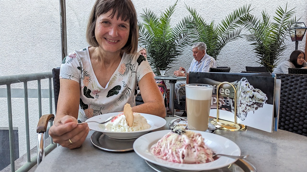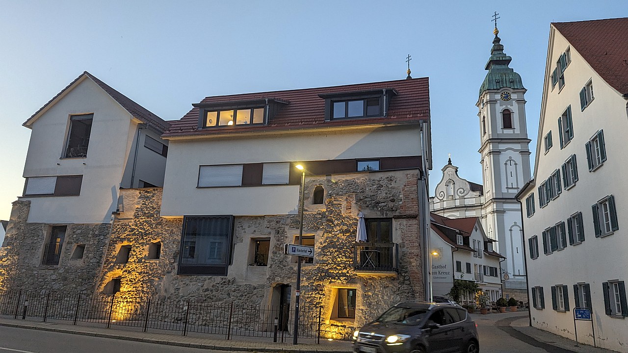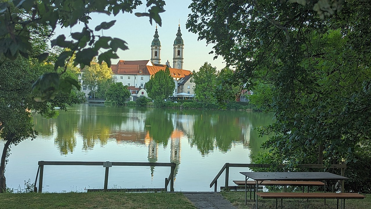 Um 19:45 Uhr starteten wir zu einem Spaziergang durch die sehr hübsche Altstadt von Bad Waldsee und um den See herum. Auf dem Rückweg kehrten wir noch in einer Eisdiele ein und ließen uns ein Spaghetti-Eis gut schmecken.
