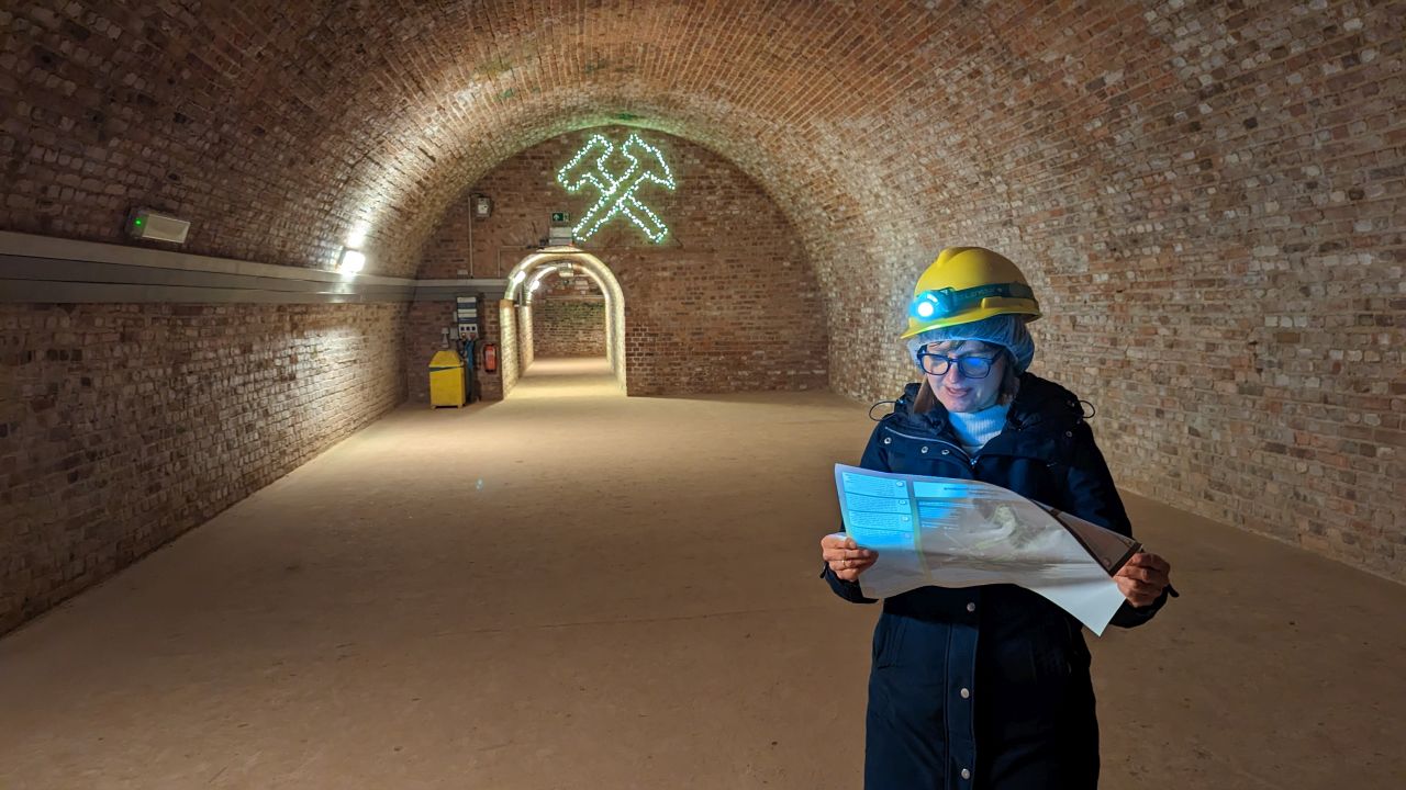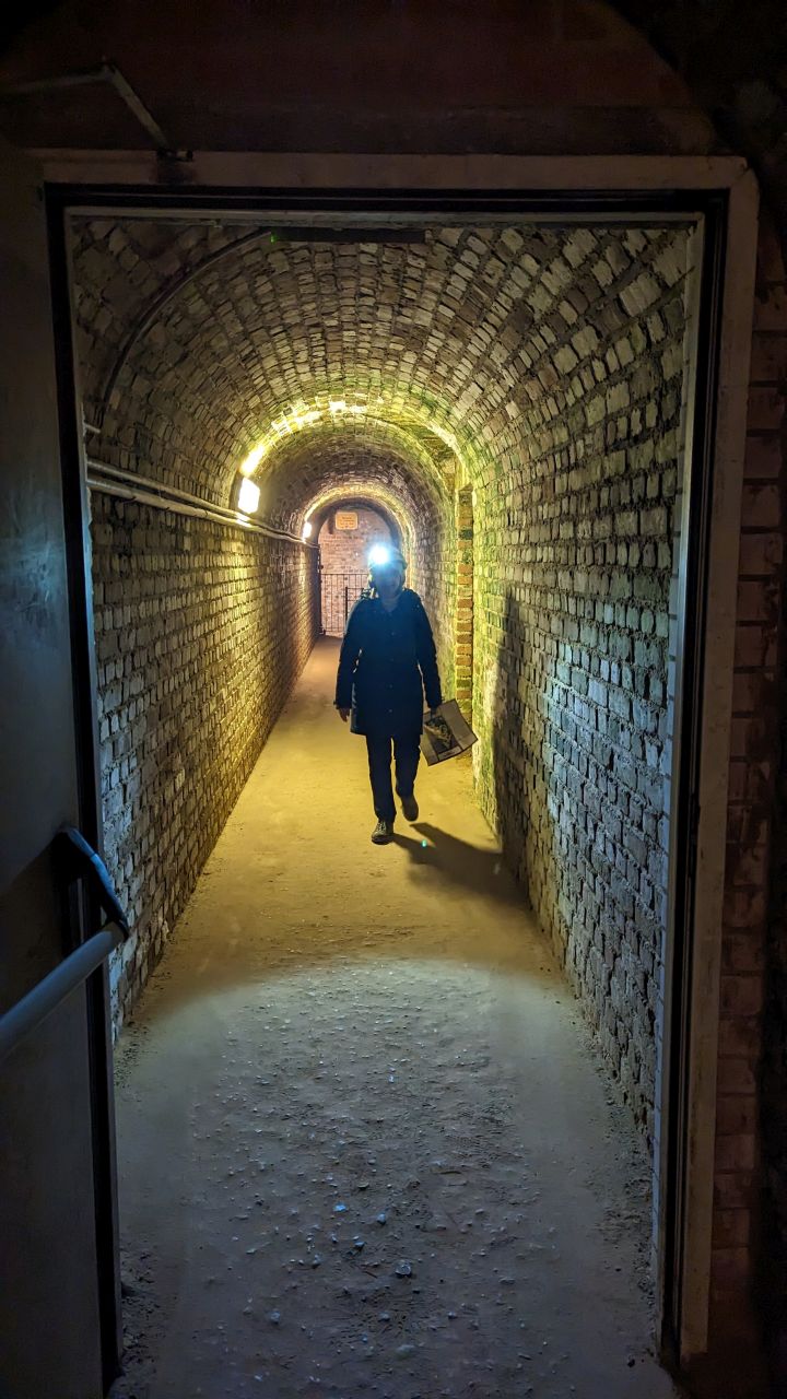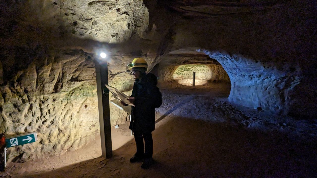 Wir ließen uns Zeit, genossen die Aussicht und stiegen dann etwas ab zu den Schlossberghöhlen. Diese waren ja unser eigentliches Ziel gewesen. „Höhlen“ ist eigentlich der falsche Begriff. Es handelt sich um Stollen, die ab dem Mittelalter in den Buntsandstein gegraben wurden – zum einen zum Abbau des Steinmaterials, zum anderen als Schutzräume für die Bevölkerung während Kriegszeiten. In den 60er-Jahren wurde sogar ein richtiger Bunker zum Schutz des Landesvaters hineingebaut – bei der Nähe zu Frankreich weiß man schließlich nie … Sowohl auf der Festung als auch in den Höhlen waren wir die einzigen Besucher – ein Vorteil vom Reisen im Februar!