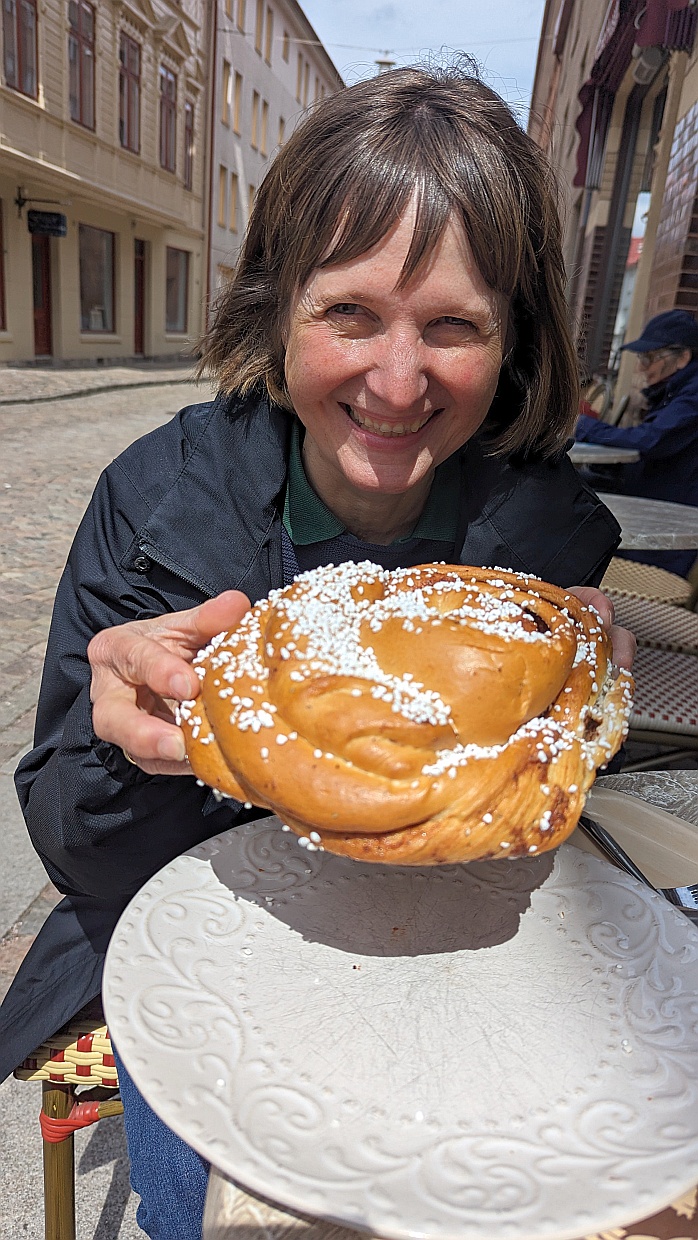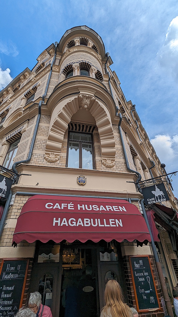 Vorbei am botanischen Garten Trädgardsföreningen ging die Fahrt weiter ins alte Stadtviertel Haga, das in erster Linie aus einer Pflasterstraße besteht, die Fußgängerzone ist. Hier befindet sich auch das Café Husaren, das für seine tellergroßen Zimtschnecken berühmt ist. Das konnten wir uns natürlich nicht entgehen lassen!