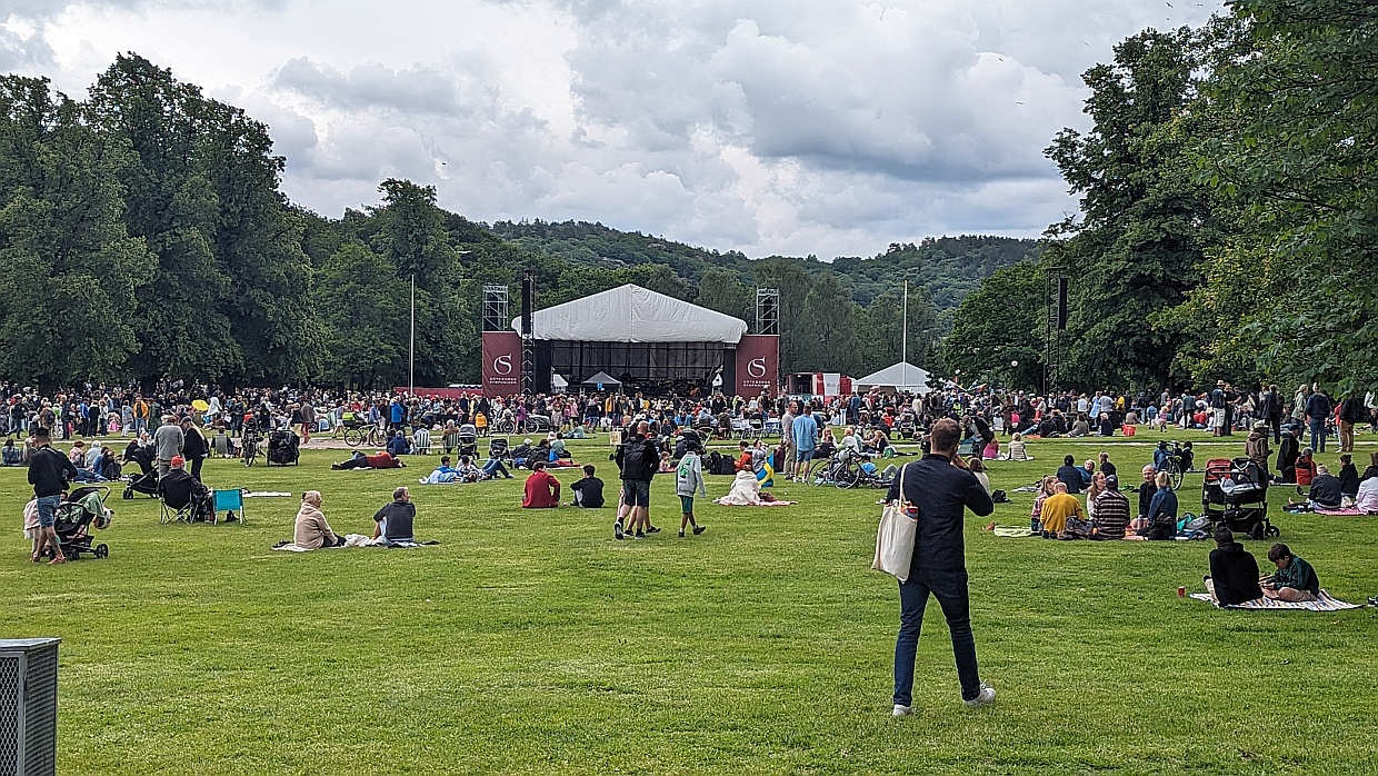 Schon als wir Haga verließen, verdunkelte sich der Himmel bedrohlich. Die Route führte weiter durch den Slottsskogen-Park, wo eine Menge los war, da hier abends ein Festival stattfinden sollte. Viele Menschen versammelten sich mit Klappstühlen auf einer großen Wiese vor einer Bühne.