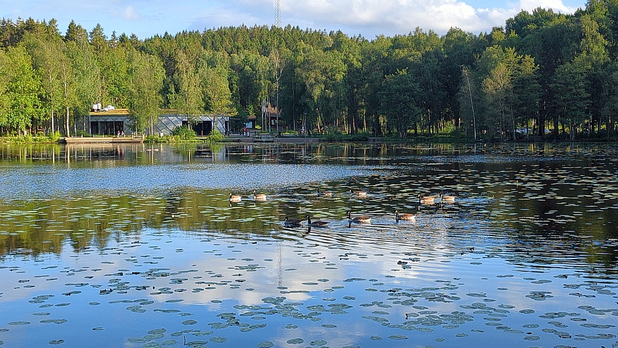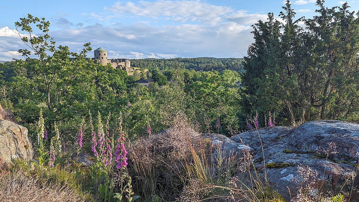 Inzwischen schien die Sonne wieder und so machten wir uns das lange Tageslicht zunutze und starteten um 18:30 Uhr zu einer kleinen aber feinen Wanderung bis 20 Uhr auf einem Weg, der als “Bohusleden” ausgeschildert ist. Zuerst ein Stück durchs Städtchen Kungälv, dann hinauf durch einen sattgrünen Wald mit wunderbarer frischer Luft zu einem sehr schönen Waldfriedhof, weiter an einen kleinen Badesee, den wir umrundeten und dann zum Höhepunkt der Tour: einer wunderbaren Aussicht auf die Festung Bohus.