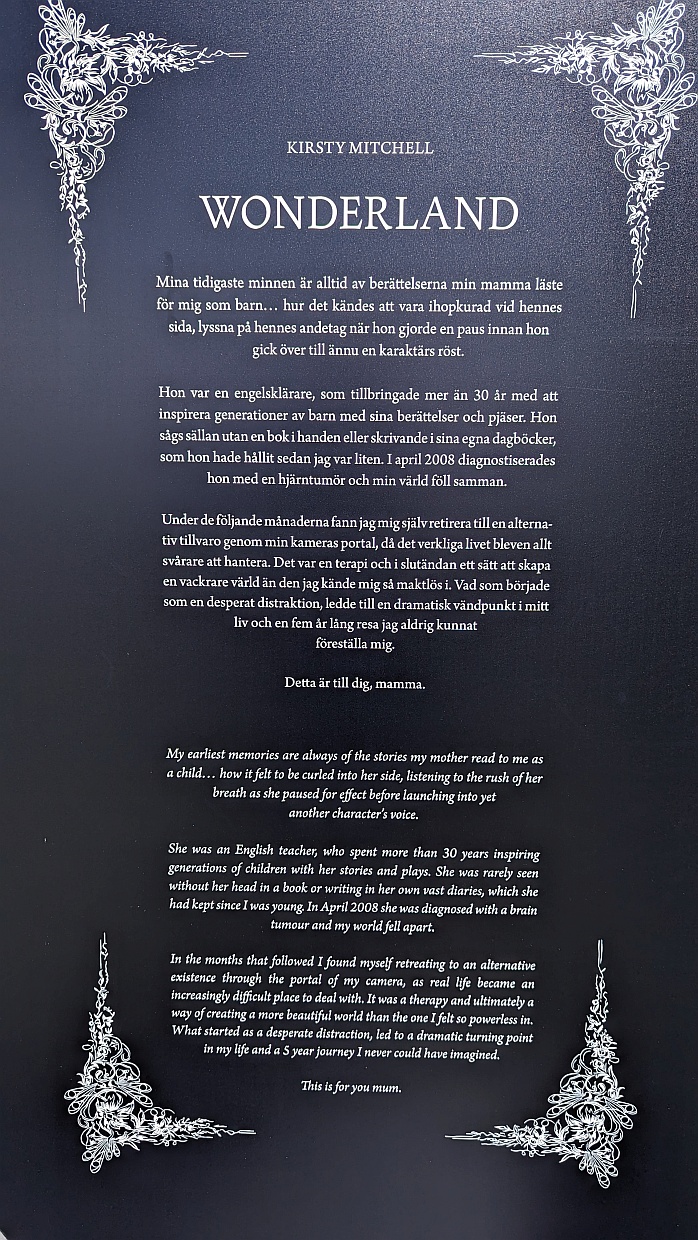 Auf einem Stock und auf dem Außengelände gab es eine besondere Ausstellung “Wonderland” mit bemerkenswerten Photographien der Künstlerin Kristy Mitchell. Xenia dachte zuerst, es seinen Fotomontagen, aber wie in einem Film erklärt und gezeigt wurde, wurden die Motive wirklich so arrangiert und fotografiert.