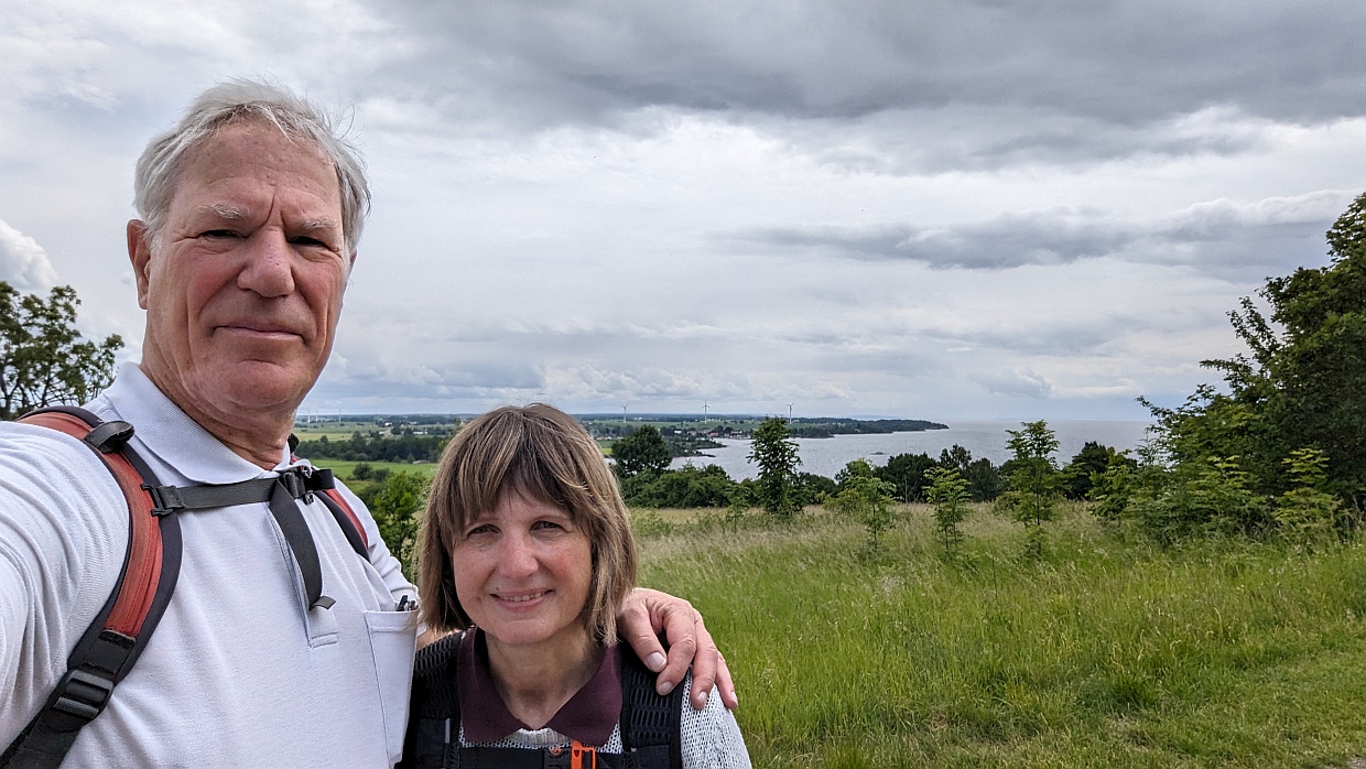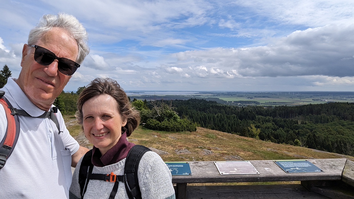 Wie sich dann herausstellte, führte die Wanderung durch den Eko-Park Omberg, auch ein sehr schönes Fleckchen Erde mit einer Steilküste zum See, einem alten Birkenwald mit riesigen Bäumen und einem Mischwald, in dem auch Kirschbäume wachsen.