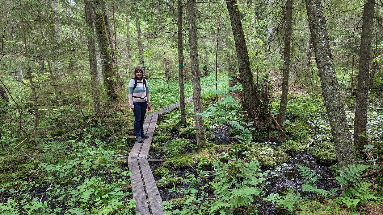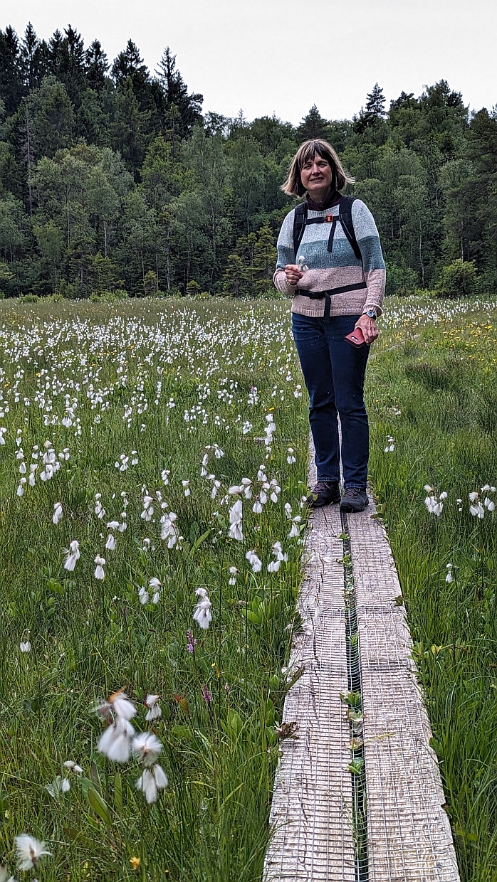 Nach dem Aussichtspunkt ging es wieder den Berg hinunter und weiter in ein Moorgebiet, das wir auf einem Bohlenweg durchquerten.