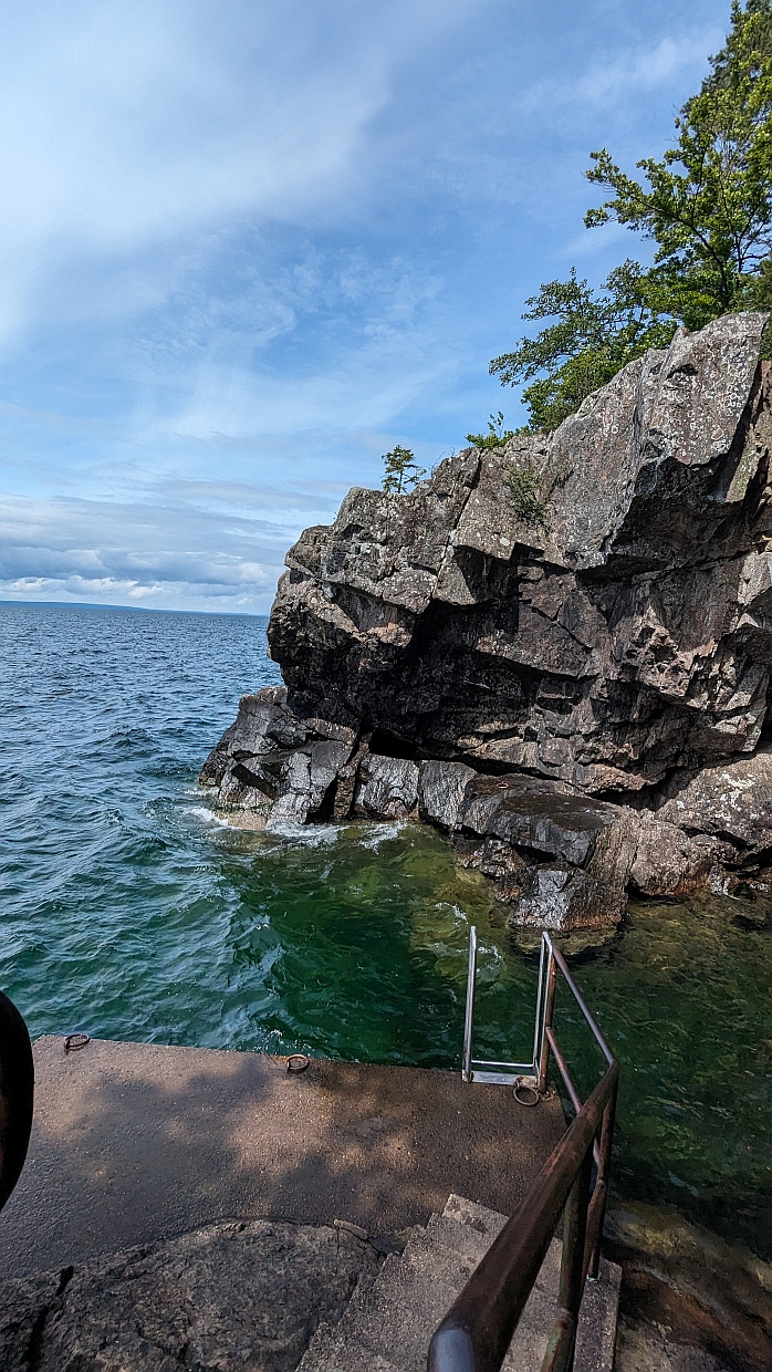 Zurück im Wald führte uns der Weg ans Ufer des Vättern, das hier felsig und steil abfallend ist.