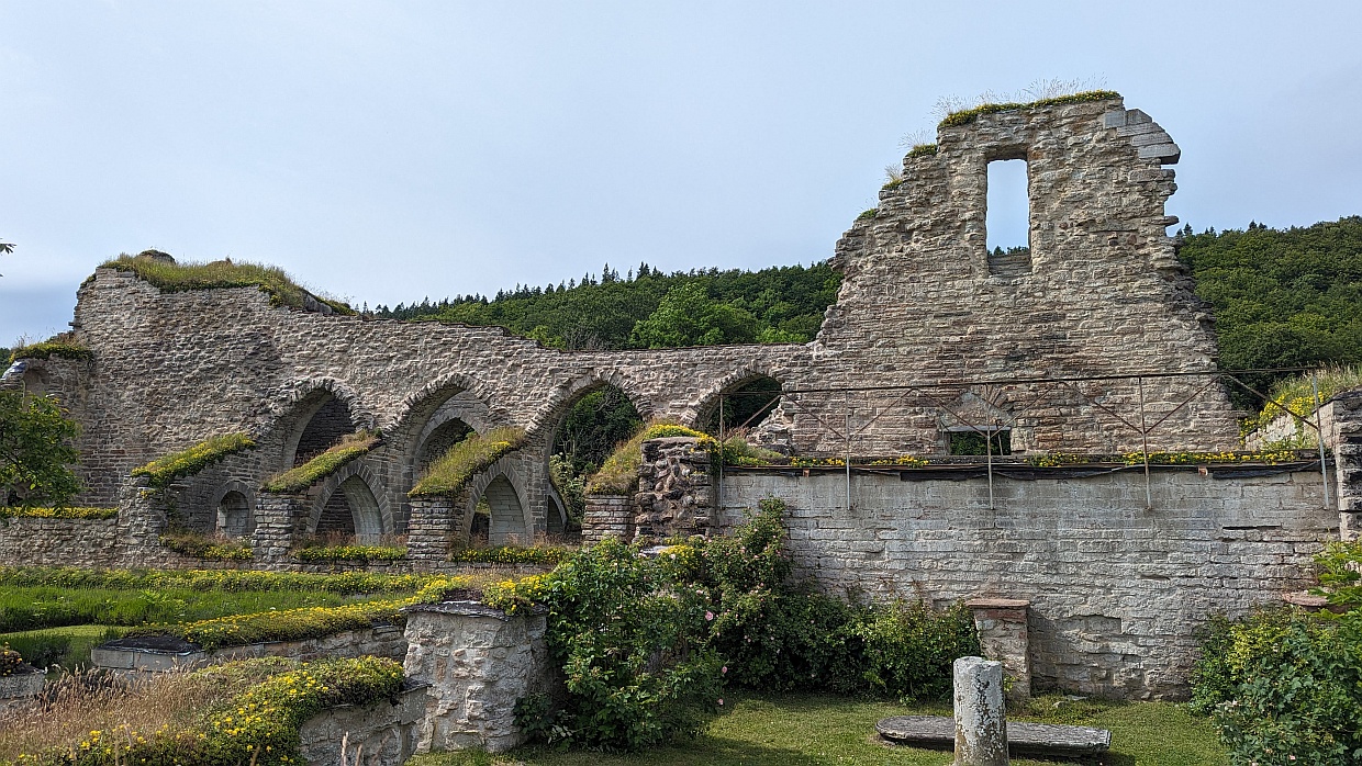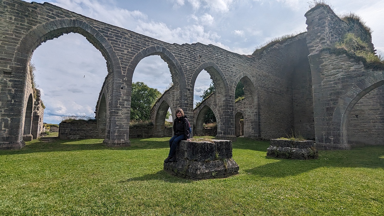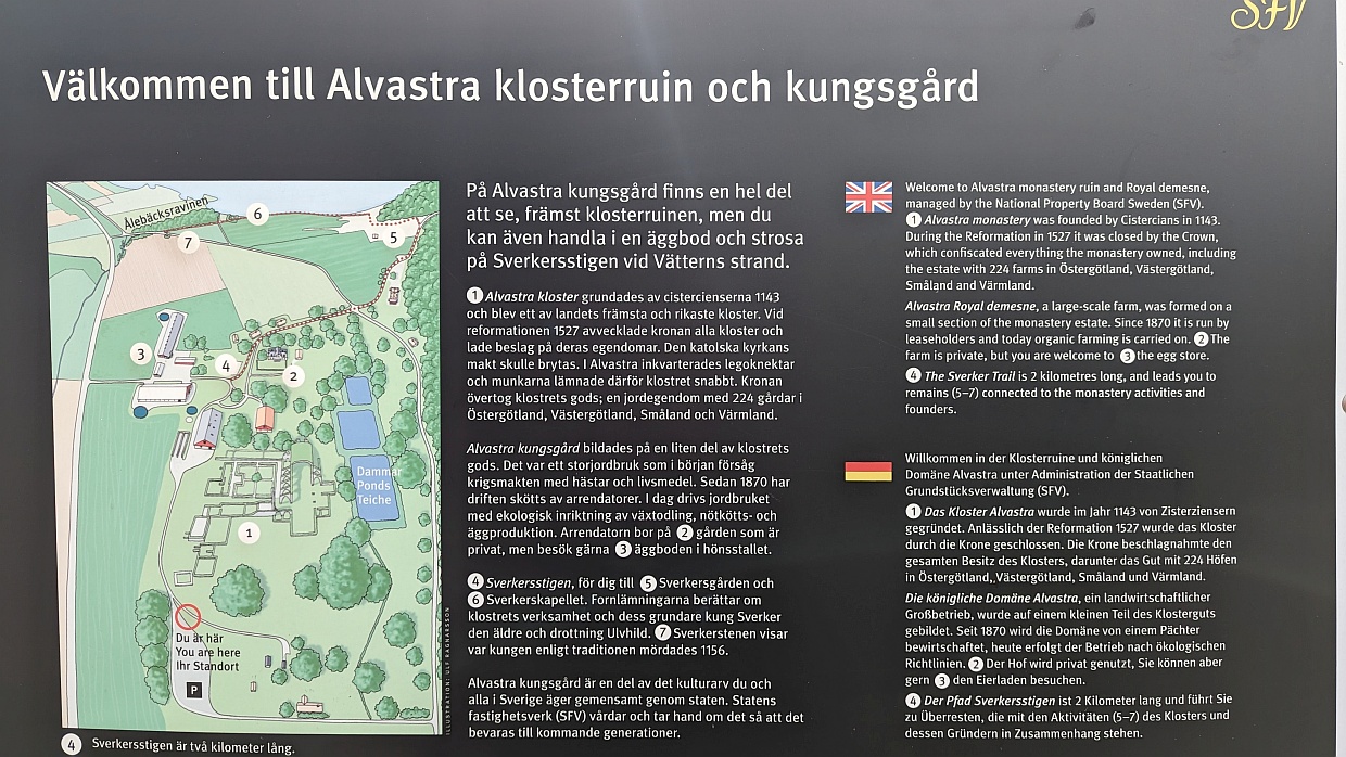 Nur einen Kilometer von unserem Parkplatz entfernt befindet sich die Ruine des Alvastra Klosters. Da wir ganz in der Nähe waren, machten wir noch einen Abstecher dorthin und durchstreiften die alten Mauern. Fasziniert hat uns der pikobello gemähte Rasen auf dem Gelände. Wer sich wohl diese Mühe gemacht und um die vielen Ecken und Kanten gemäht hat?