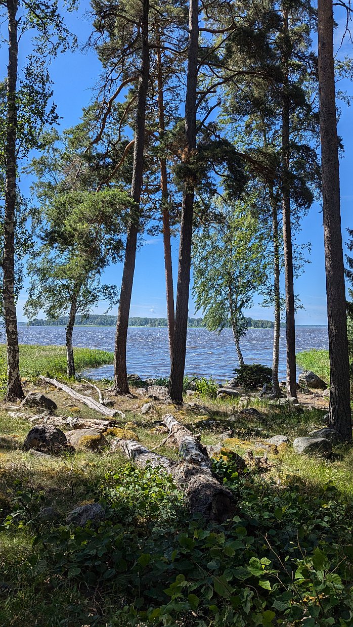 Nach dem Frühstück starteten wir mit den Rädern zu einer Erkundungs-Rundtour um die Insel Björnö. Direkt vom Parkplatz aus konnten wir einmal um die Insel radeln – meistens durch den Wald, aber auch am See entlang und an ein paar Stellen machten wir einen kurzen Abstecher ans Ufer.