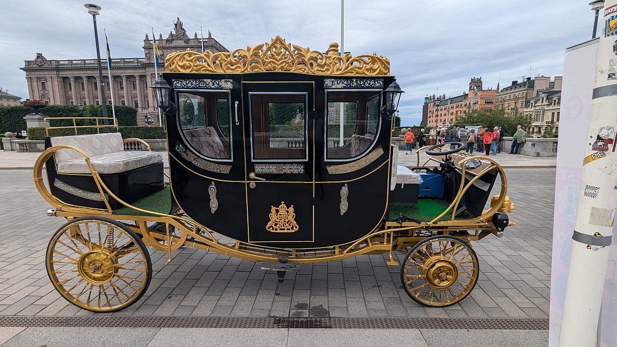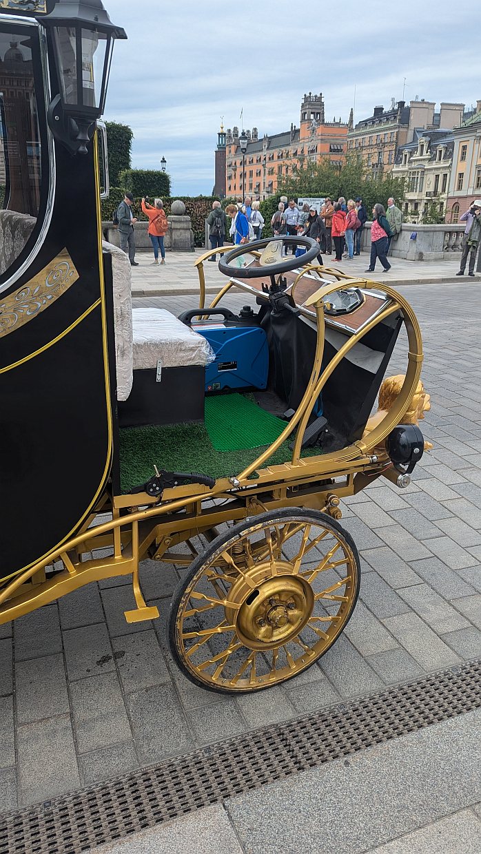 Die erste Station, die wir ansteuerten, war das Schloss. Vor dem Schloss wartete eine elektrische Königskutsche auf Kunden.