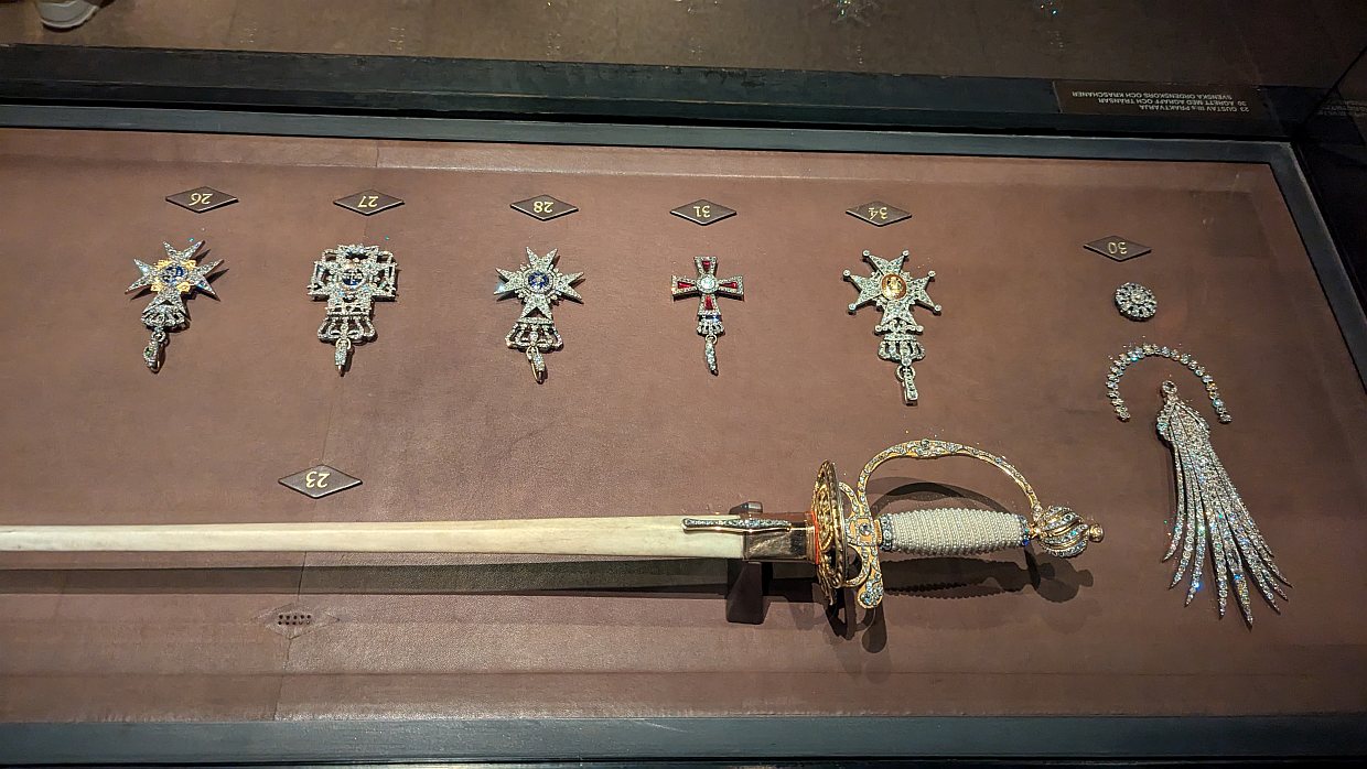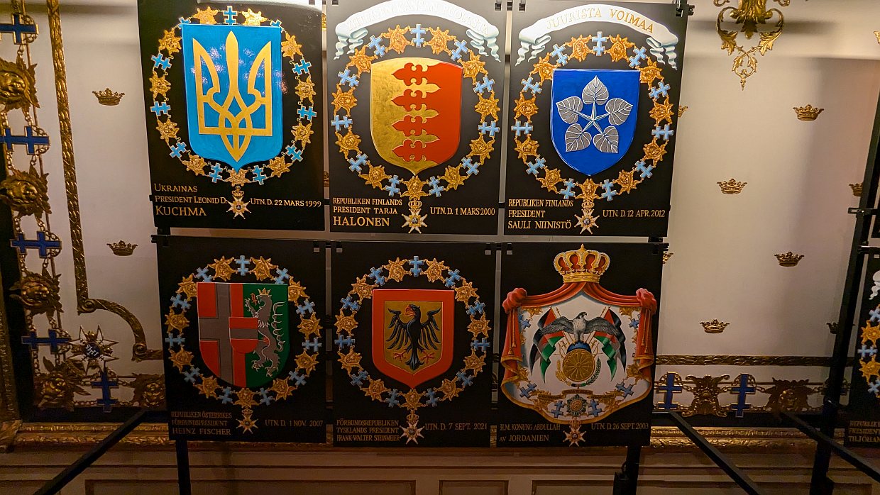 Es folgten mehrere Räume mit Orden und Gewändern der Könige, sowie die Wappen der Staaten, die schon zu Besuch waren