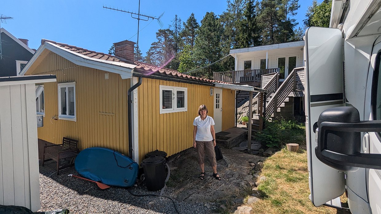Nach einem letzten gemeinsamen Frühstück ging es ans Zusammenpacken. Um 10:45 Uhr verabschiedeten wir uns von Ulis und Elsa, dann sagten auch wir unserem Feriendomizil Lebewohl und fuhren Marina und Tom zu einer S-Bahnstation im Süden Stockholms.