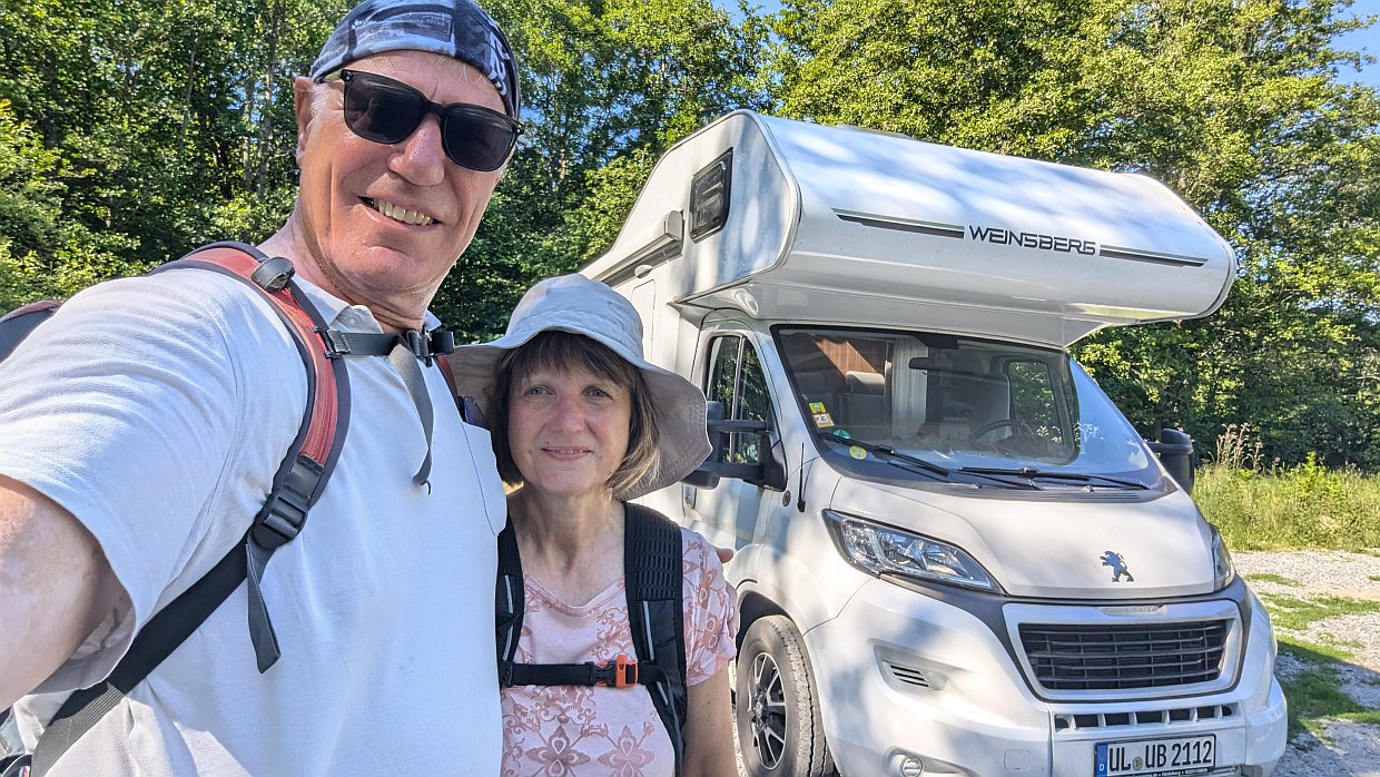 Nach einer ruhigen Nacht auf unserem Waldparkplatz freuten wir uns am Morgen über die Sonne, die aus einem blauen Himmel schien. So sollte es auch den ganzen Tag bleiben.