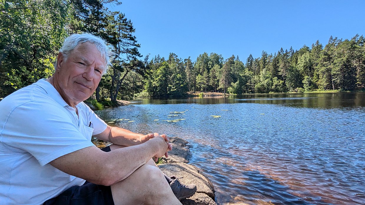 Die Steine am Ufer gingen bis in den See und Xenia beschloss, das zum Baden zu nutzen. Bei 26 Grad war das Wasser eine angenehme Erfrischung und es war auch gar nicht kalt. Udo meinte, das liege am dunklen moorigen Untergrund. Er sprang dann auch noch ins Wasser und genoss die Abkühlung.