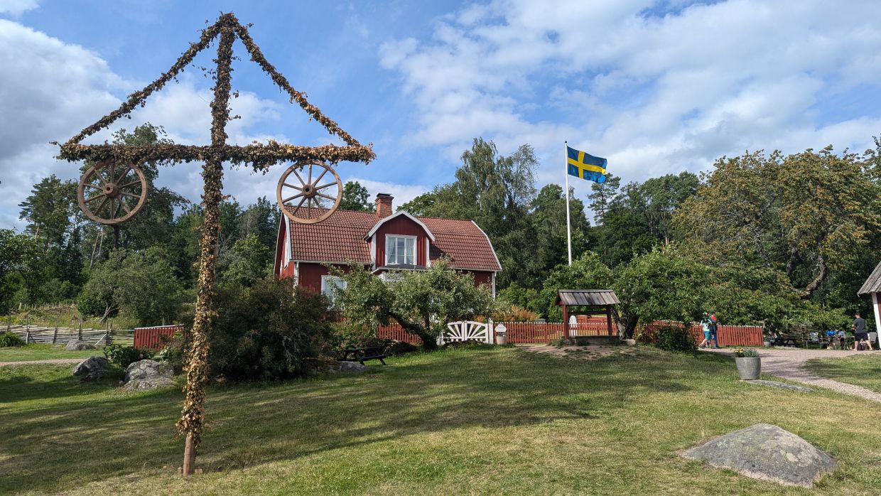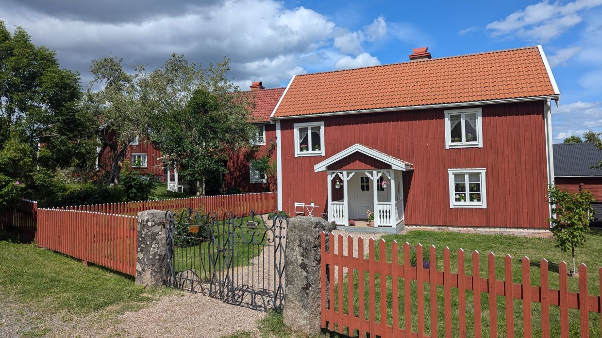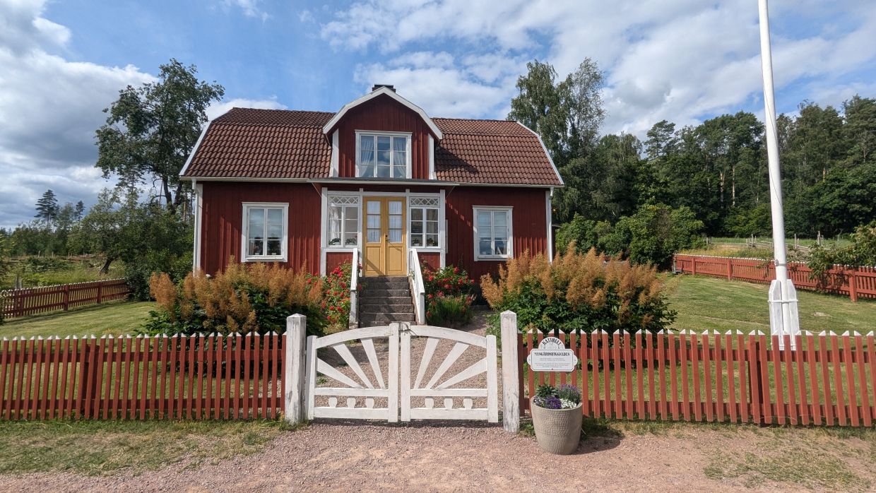Nun führte uns die Fahrt auf kleinen und meist kiesigen Straßen durch die schöne Landschaft Smålands, die sich in der Sonne von ihrer besten Seite zeigte. So stellt man sich Schweden vor – immer wieder kleine Höfe mit roten Häusern - manche ganz einfach, andere schon mehr Villen mit großen Gärten. Das Ziel war Katthult, wo die “Michel von Lönneberga”-Filme gedreht wurden.
