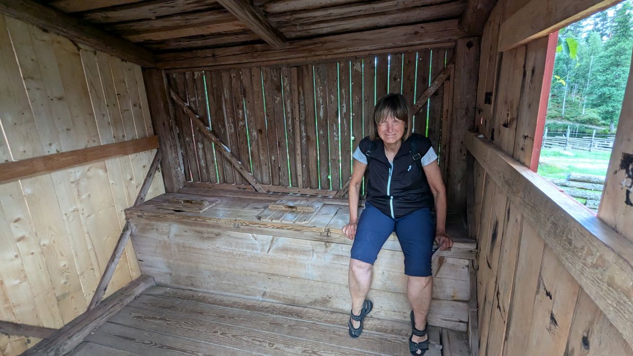 Je näher wir Katthult kamen, umso mehr Wohnmobile begegneten uns. Im Dorf selbst verteilten sich die Leute aber ganz gut und wir erkannten manches aus den Filme wieder – das Haus, in dem Michel wohnte, den Fahnenmast, an dem Klein-Ida hochgezogen wurde, die Werkstatt mit den geschnitzten Figuren, in die Michel immer eingesperrt wurde, das Plumpsklo .... Wir lasen auch einige interessante Schautafeln mit Berichten zu den Filmen und den Dreharbeiten, die auch in deutscher Sprache zur Verfügung standen.