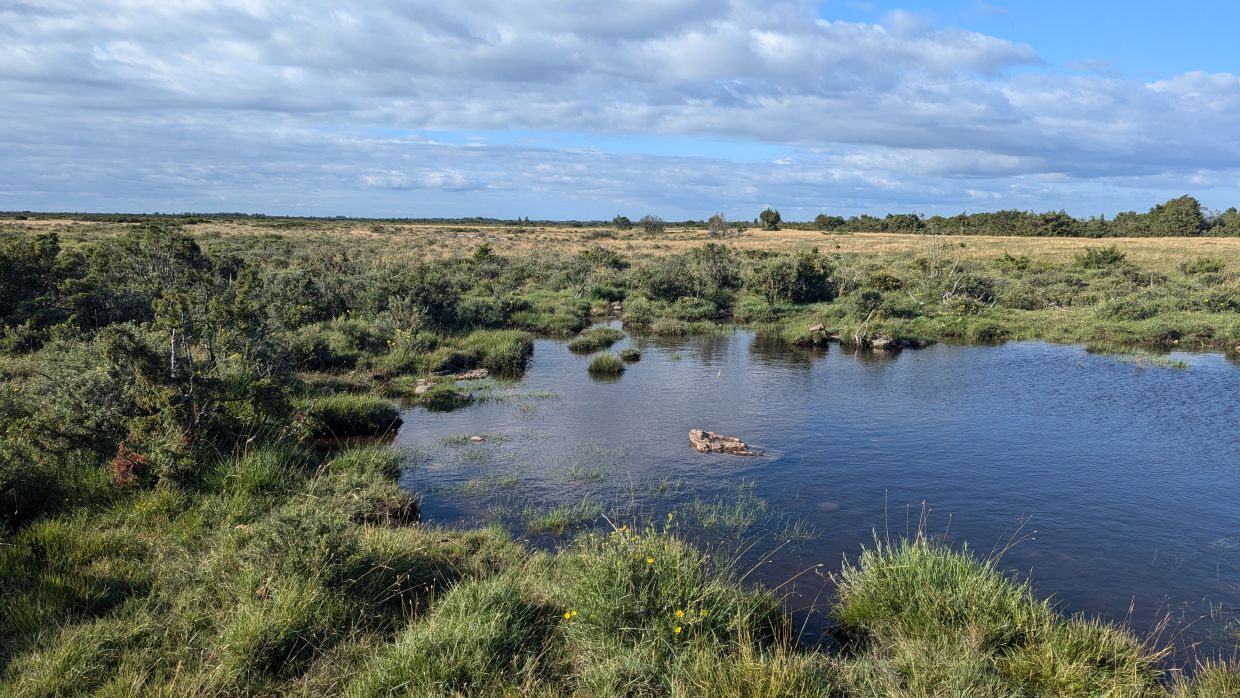 Mehr zufällig als geplant kamen wir an Möckelmossen vorbei, wo eine schöne Wanderung durch dieses Gebiet startet. In der Abendsonne aber bei kräftigem Wind, weshalb eine Jacke zumindest zeitweise sehr angenehm war, unternahmen wir die 6-Kilometer-Runde und genossen die besondere Landschaft.