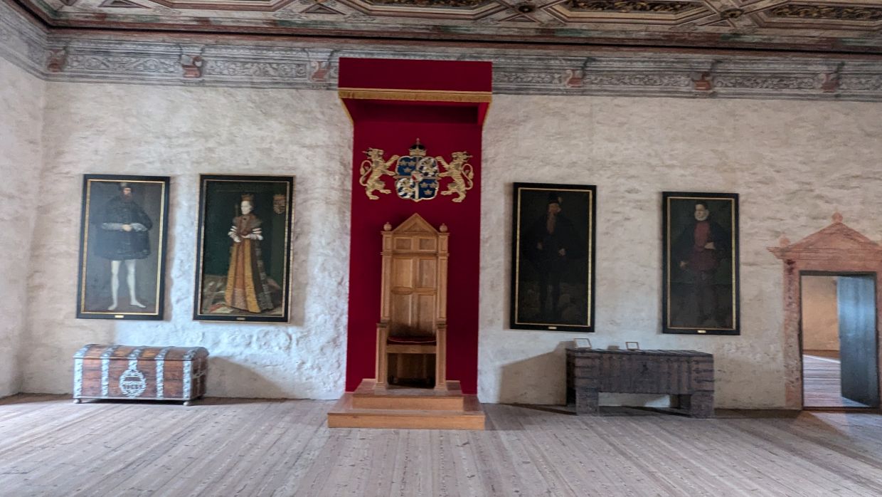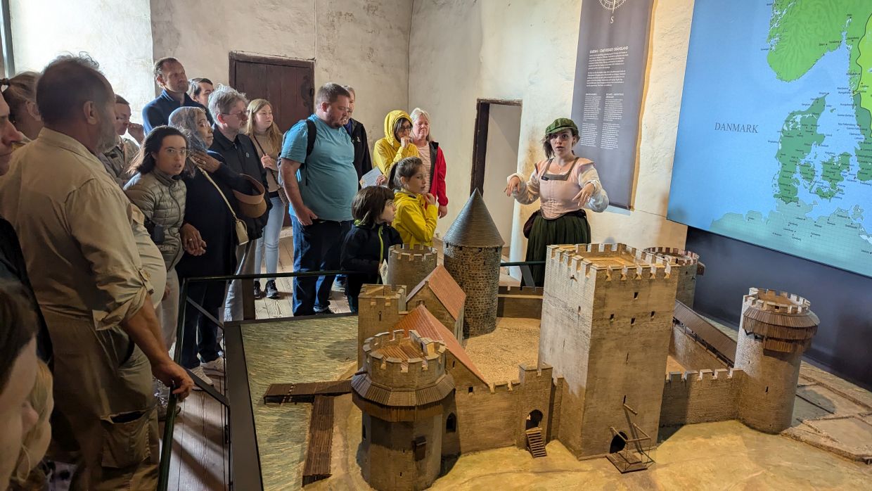 Um 13 Uhr startete eine geführte Tour, zwar nur auf Englisch, aber im Eintrittspreis enthalten. Bis dahin gingen wir schon einmal auf eigene Faust durchs Schloss. Alle Erklärtafeln sind auch auf Deutsch, so dass wir schon einiges lernen konnten über die Geschichte des Schlosses, seine Bedeutung zur Verteidigung Schwedens, die Bildung der Kalmarer Union zwischen Schweden, Norwegen und Dänemark im Jahre 1397 und über die Wasa-Könige. Die Räume im Schloss sind noch original erhalten und zum Teil wirklich sehr schön und beeindruckend!