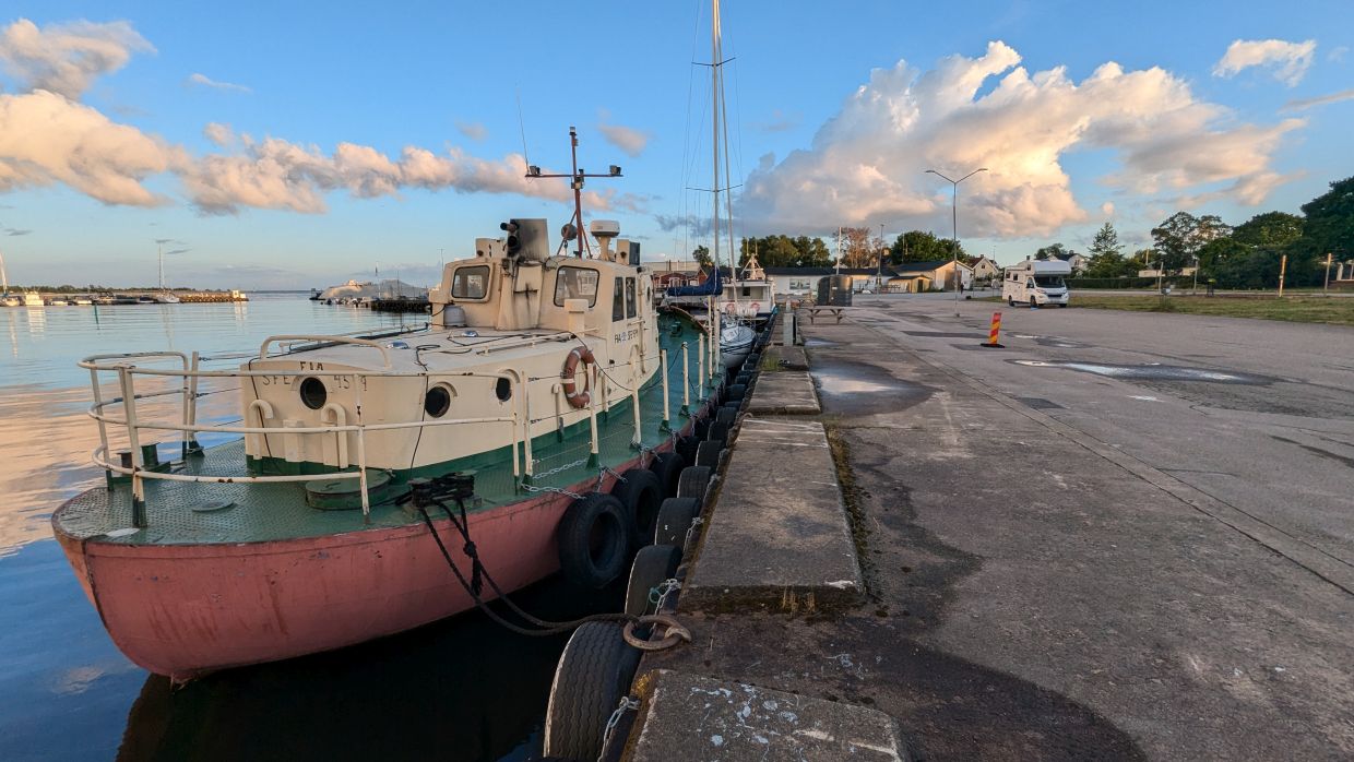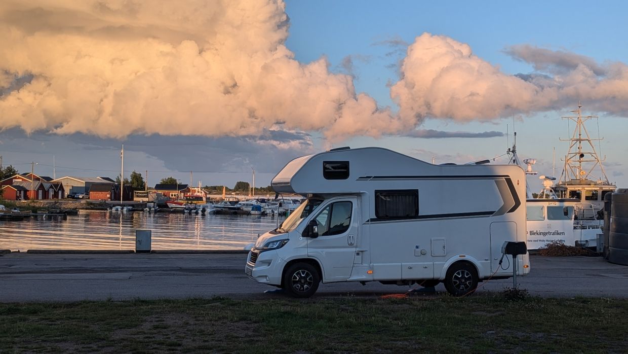 Nach einer Siesta entschlossen wir uns, weiter in Richtung Karlskrona zu fahren. Es hatte wieder angefangen zu regnen und wir wollten uns einen Platz mit Strom suchen, an dem wir unsere Räder wieder laden konnten. In Karlskrona selbst sah es damit nicht so toll aus – alles sehr teuer und laut Rezensionen auch überfüllt. So entschieden wir uns für die Schäreninsel Hassö neben Karlskrona, wo es mehrere Plätze mit Strom für ca. 20 Euro pro Tag gibt.