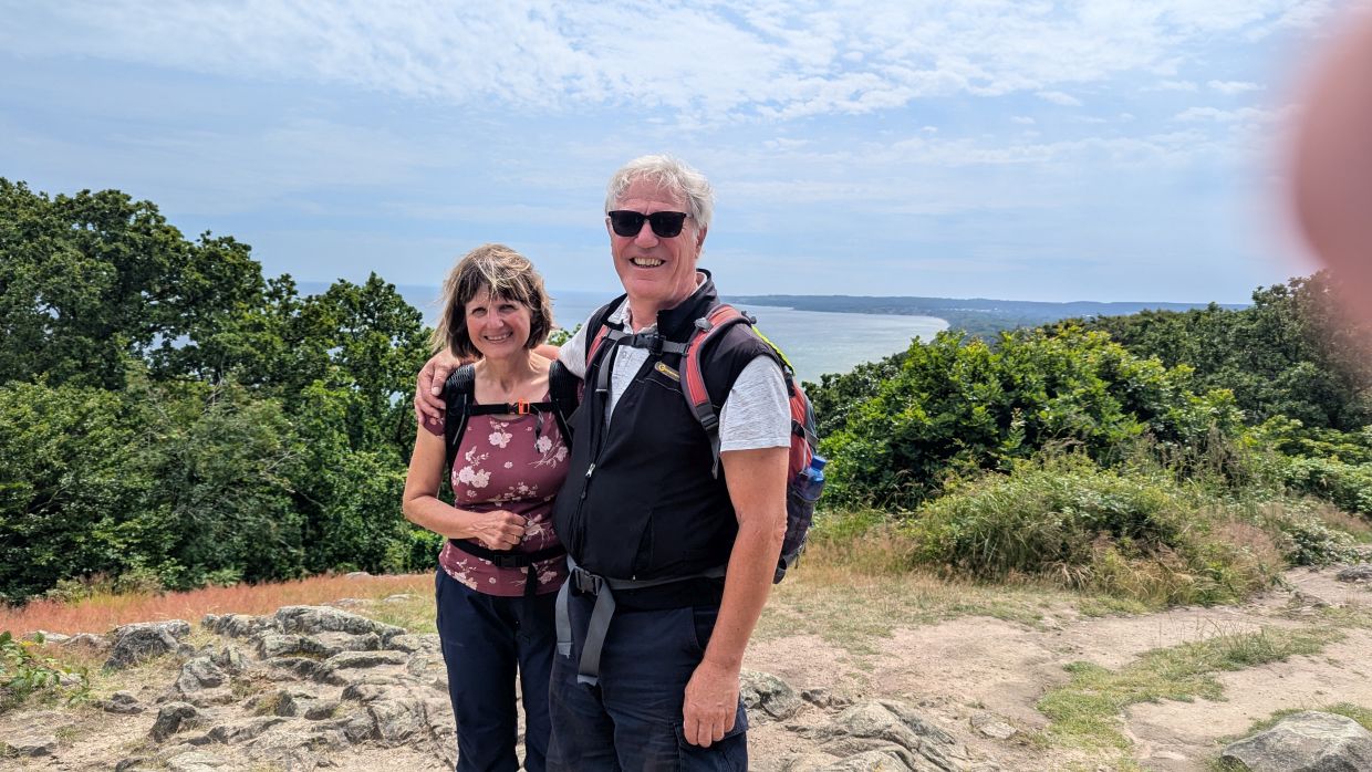 Nach dem Strand ging es wieder in den Wald, an einem kleinen See vorbei und weiter auf der lila Tour, die über einen weiteren kleinen Berg, den Kortelshuvud, führt. Dort machten wir noch einmal eine kurze Rast und genossen die Aussicht aufs Meer und die Küste.