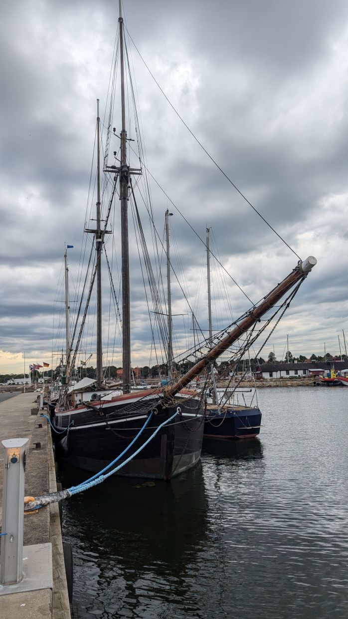 Inzwischen hatte sich der Himmel zugezogen. Wir machten trotzdem eine kleine Erkundungstour vor ans Meer und an den Hafen von Skillinge. Dort liegen mächtige Segelschiffe, vielleicht Fischerboote?