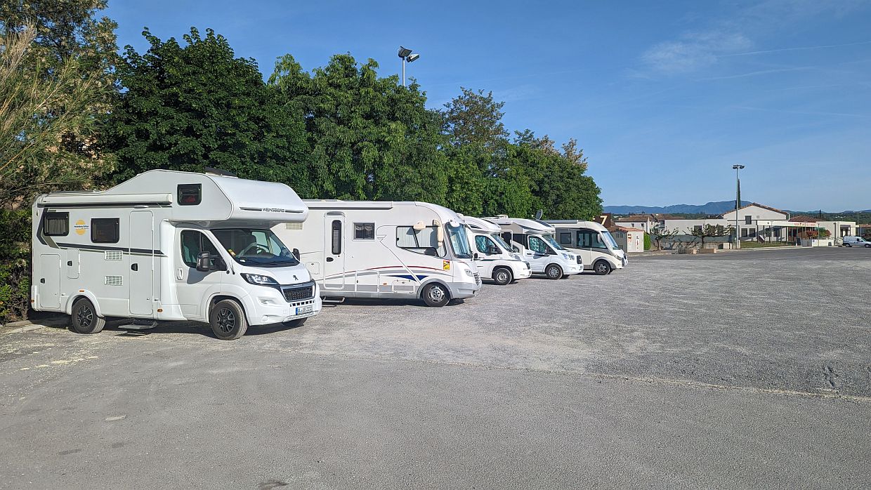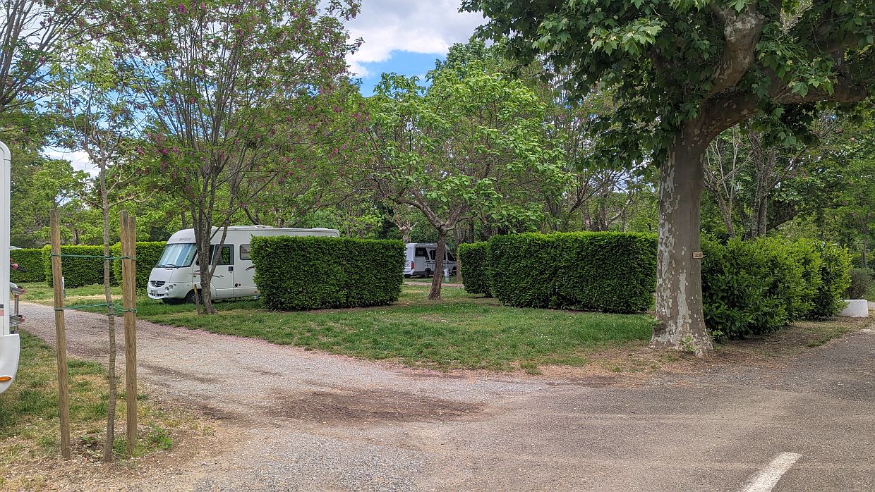 Zuerst machten wir noch einen Abstecher zu einem Lidl, um uns mit Getränken, frischen Erdbeeren und Gemüse einzudecken. Anschließend fuhren wir den Campingplatz an, den wir uns ausgesucht hatten. Er enttäuschte uns nicht: große Parzellen unter Bäumen, Schatten und Halbschatten, einfache aber saubere Sanitäranlagen und nur mäßiger Betrieb.