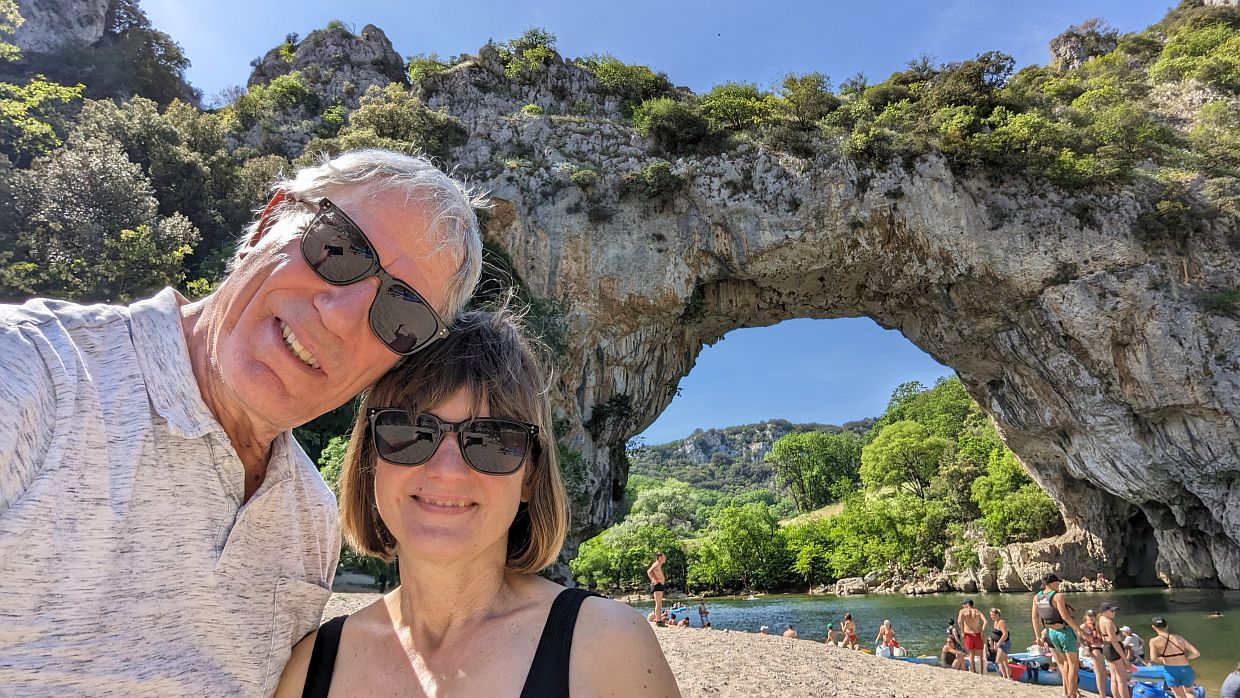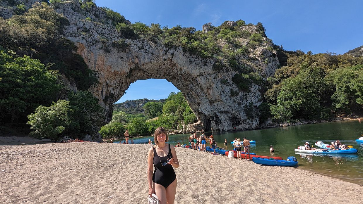 Der Höhepunkt der Fahrt war der Pont d‘Arc, eine natürliche Felsenbrücke über den Fluss, den wir durchfuhren. Wir machten einen kleinen Zwischenstopp kurz nach der Brücke für ein paar Fotos und ein bisschen relaxen. Dann ging es noch ein kurzes Stück stromabwärts bis zu dem Punkt, wo wir die Ardèche verlassen mussten. Wir waren wohl deutlich schneller gewesen als die meisten, denn wir mussten noch eine Stunde auf unseren Abholer warten.