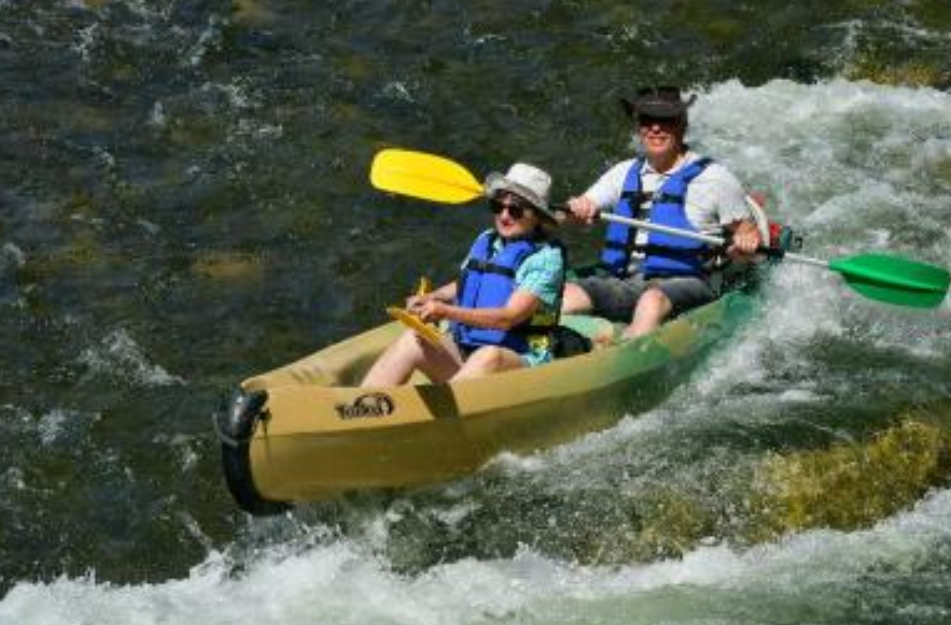 Die sehr nette Dame an der Rezeption gab uns mehrere Plätze zur Auswahl, die wir uns anschauen und einen davon aussuchen konnten. Außerdem machte sie uns darauf aufmerksam, dass man hier an der Rezeption Kanutouren zwischen 2 und 6 Stunden auf der Ardèche buchen kann. Man wird am Campingplatz abgeholt, an die Einsetzstelle gefahren und dann einige Kilometer stromabwärts wieder aufgesammelt und zurückgebracht. Das klang doch sehr verheißungsvoll und wir entschieden uns für eine 3-Stunden-Tour, die um 14 Uhr startete.
