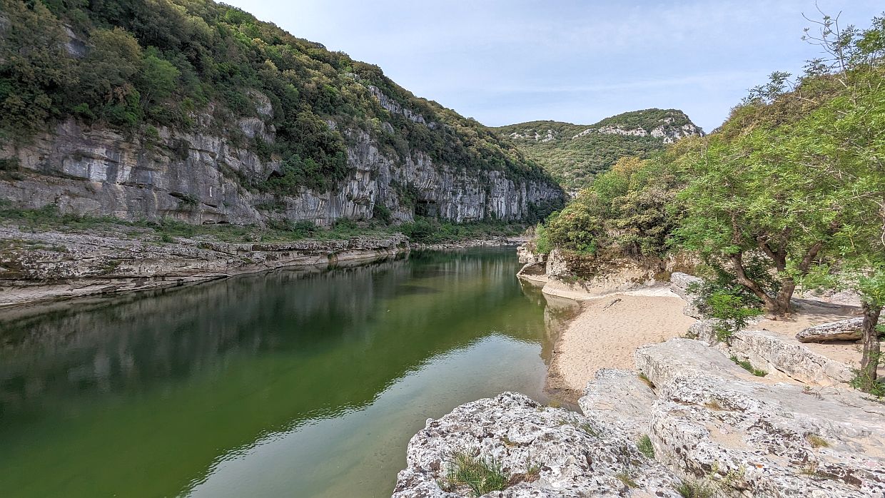 Heute hatte Xenia einen Wecker auf 7:30 Uhr gestellt, da wir noch vor dem angekündigten Regen eine Wanderung vom Parkplatz der Grotte de Saint Marcel hinunter an die Ardèche, einen Pfad den Fluss entlang und dann wieder den steilen Hang hinauf zum Parkplatz machen wollten.