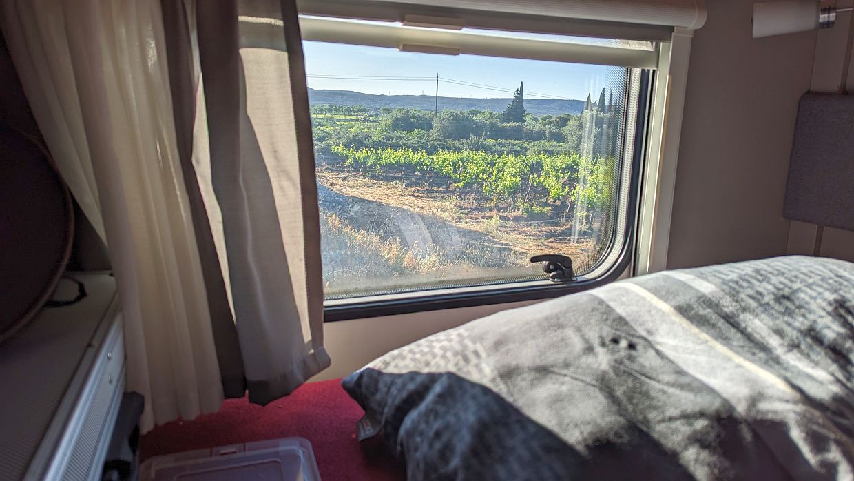 Die 35 km bis zu unserem Wohnmobilstellplatz fuhren wir an einem Stück und kamen um 19:30 Uhr wohlbehalten bei unserer Berta an. Udo verräumte die Räder, Xenia machte noch ein paar Spiegeleier mit Bacon und Möhrensalat.