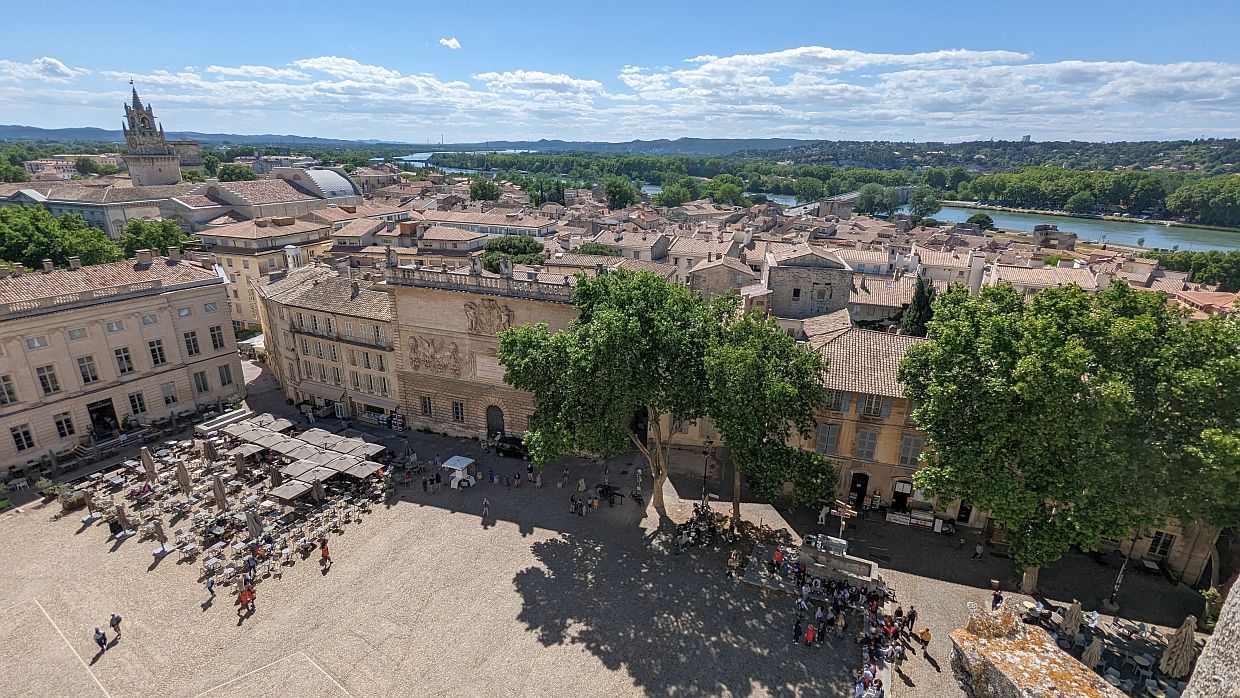 Der erste Weg führte uns auf die Pont Saint-Bénézet, bekannt durch das Kinderlied „Sur le pont d’Avignon“. Wir kauften dort ein Kombiticket für die Brücke und den Papstpalast, den wir natürlich auch noch besichtigen wollten. Über einen Audioguide hörten wir uns ein paar Infos zur Geschichte der Brücke und auch des Papstpalastes an.