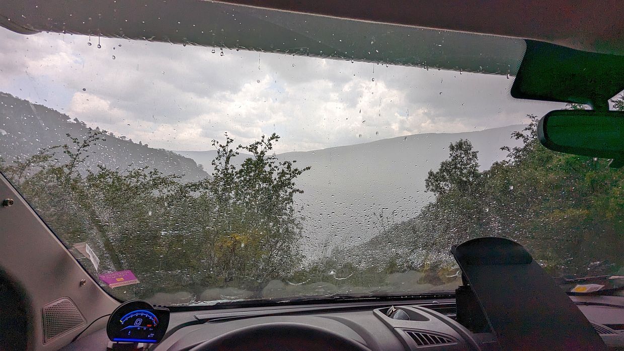 Wir waren keine 10 Minuten in der Berta, da ging das Unwetter richtig los: Starkregen mit Blitz, Donner und sogar etwas Hagel und das ziemlich lange. Als erstes duschten wir und im Bad hörten sich der Regen und der Hagel noch bedrohlicher an als sonst im Auto. Waren wir froh und dankbar, mal wieder gerade noch rechtzeitig angekommen zu sein!